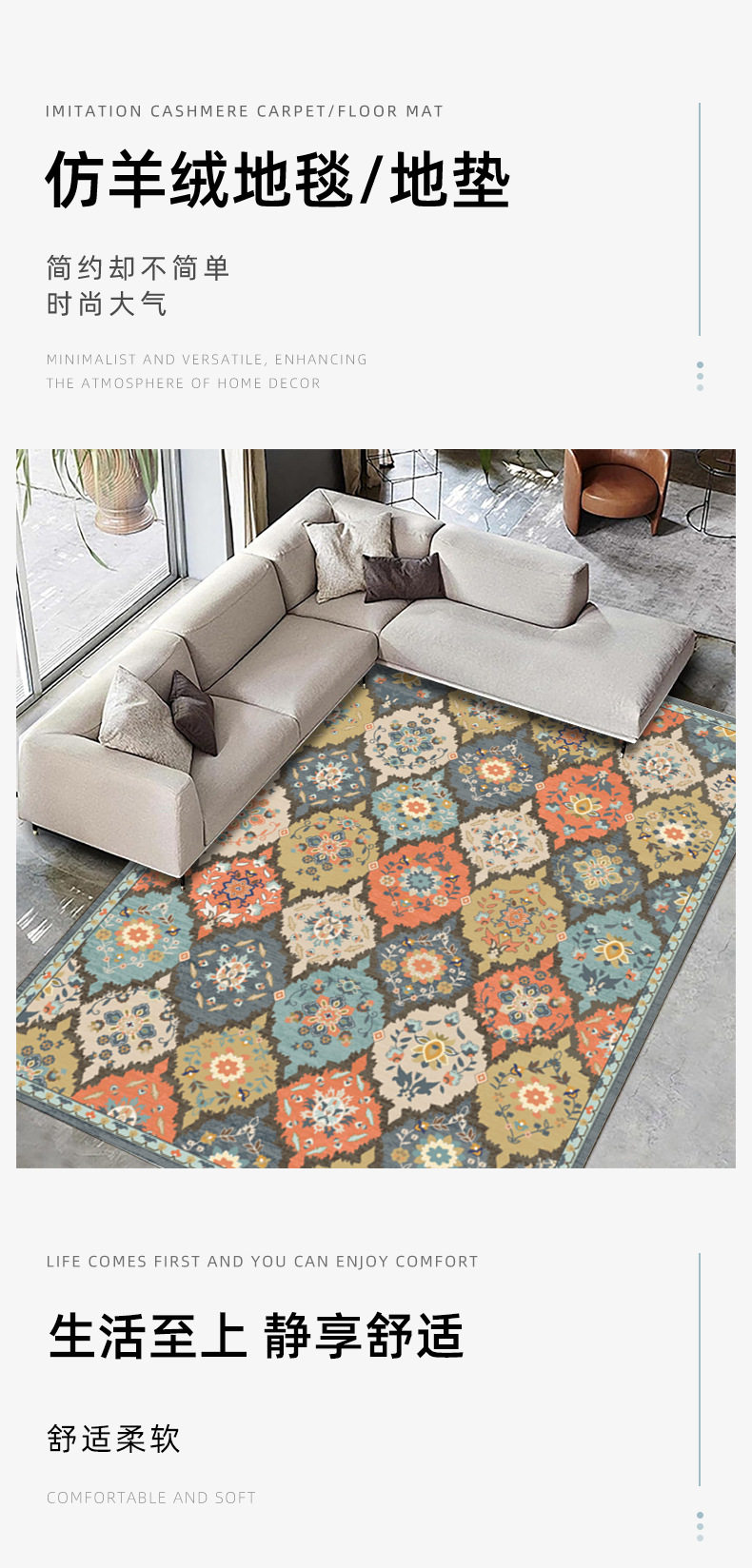 仿羊绒TPR水洗底地毯shein可折叠防滑客厅地毯walmart temu 地垫