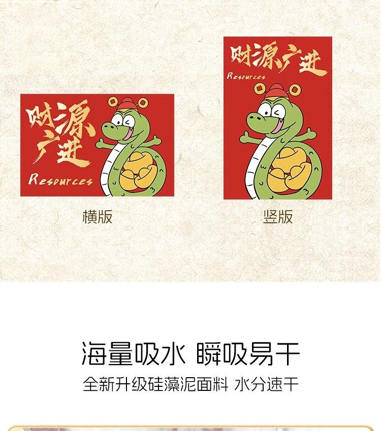 新年蛇年地垫硅藻泥洗手台浴室吸水垫卫生间厕所门口速干防滑脚垫