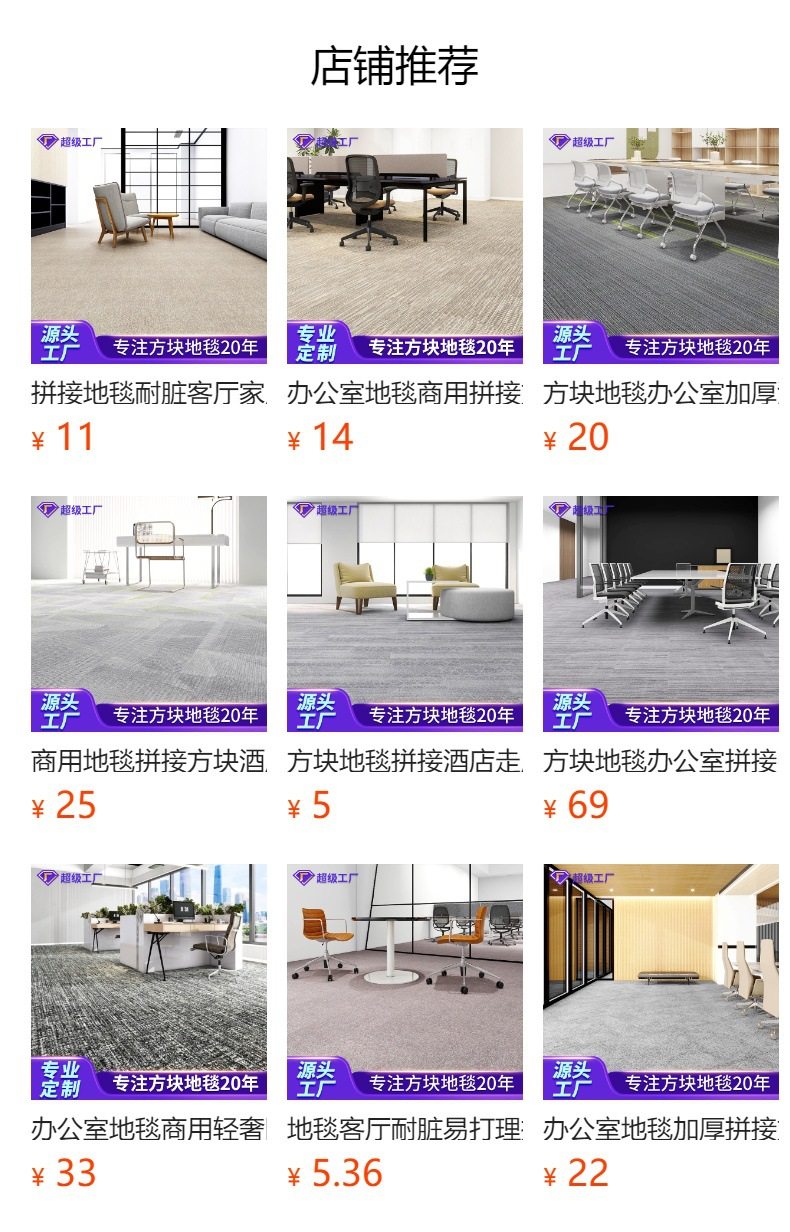 办公室地毯商用拼接方块满铺写字楼加厚卧室pvc耐磨阻燃尼龙地毯