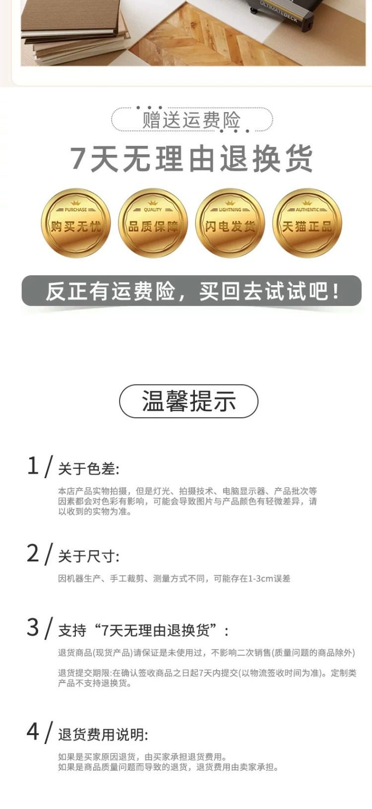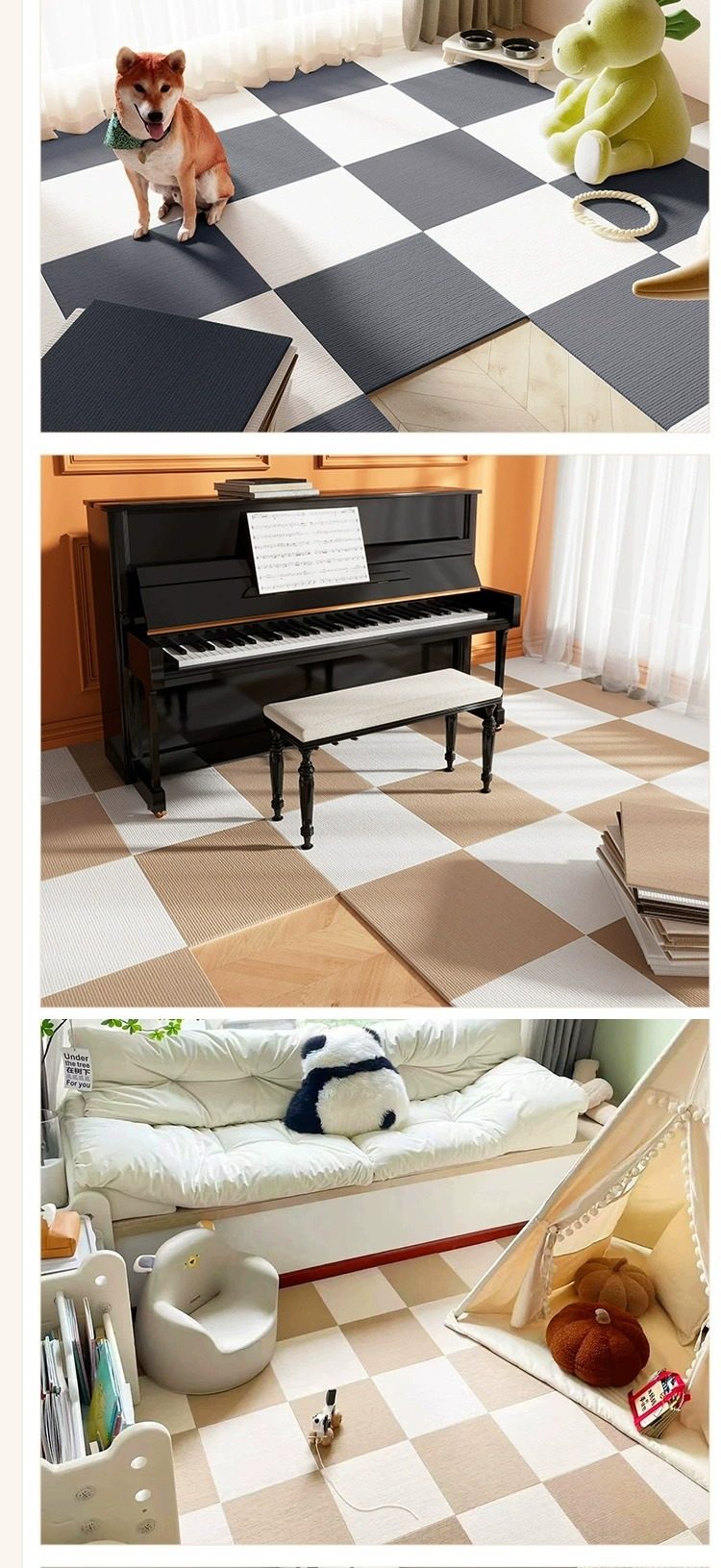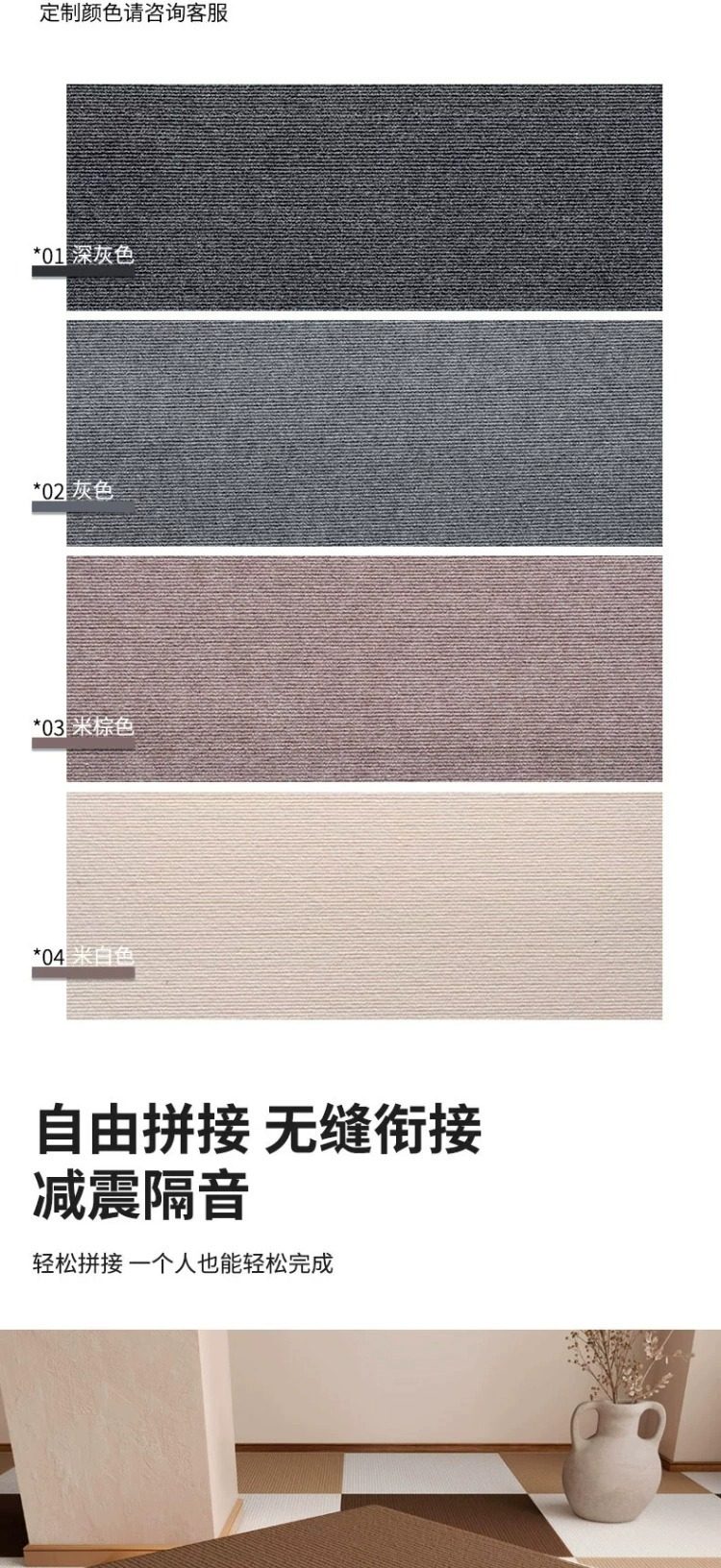 1.自粘背面带胶款优点是适合水泥地与不平整光滑的表面,缺点是不用的时候撕起来可能会有留胶,不能重复使用,背面是银色铝箔。2.免胶吸附款适合平整光滑的表面(光滑的木地板与瓷砖可用),缺点是水泥地与粗糙不平整的面不适合贴,优点是可重复使用,脏了可以取下水洗后重复使用。