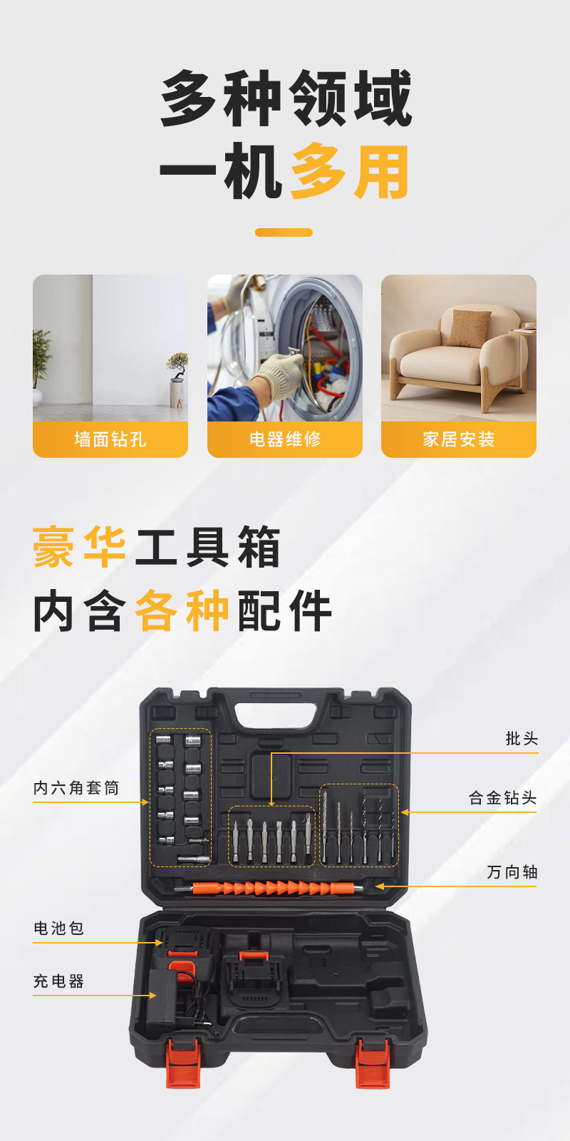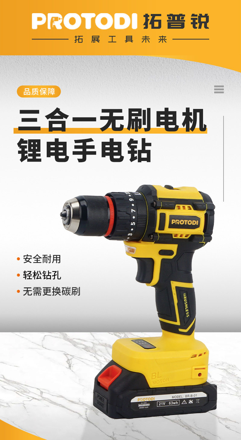 拓普锐锂电钻无刷冲击手枪转家用充电式打孔工具多功能电动螺丝刀