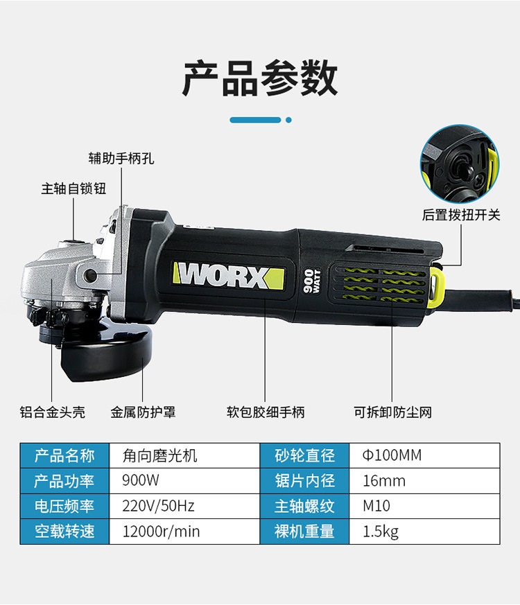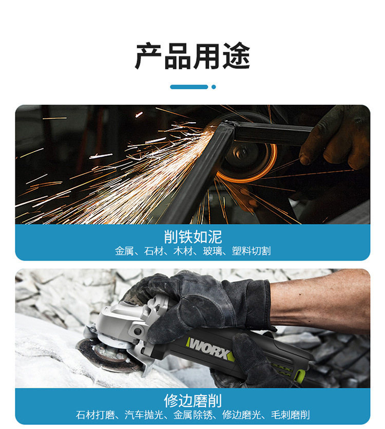 威克士角磨机WU900工业级多功能万用手磨机切割抛光打磨电动工具