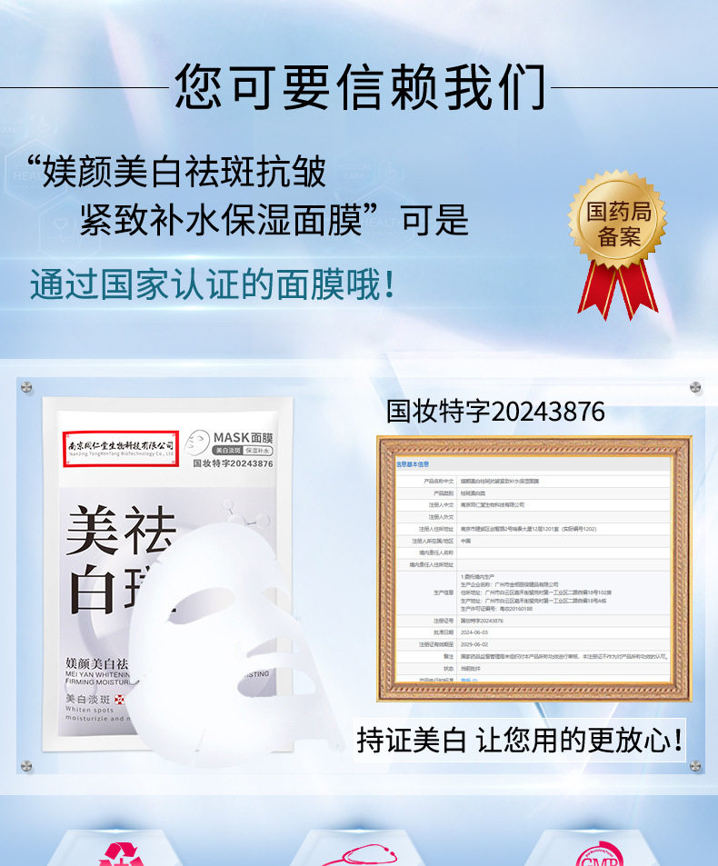 本店所有产品可按照要求定制贴牌,免费打样,免费包装设计,代理备案及送检等,一站式服务,让您轻松拥有自己的品牌。