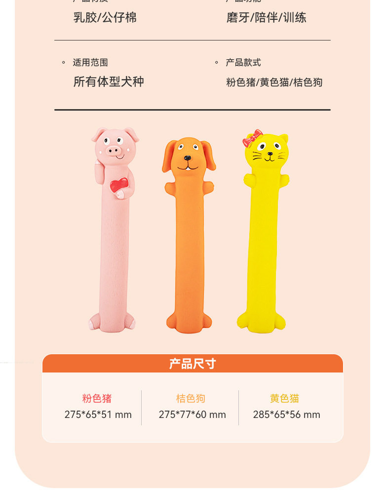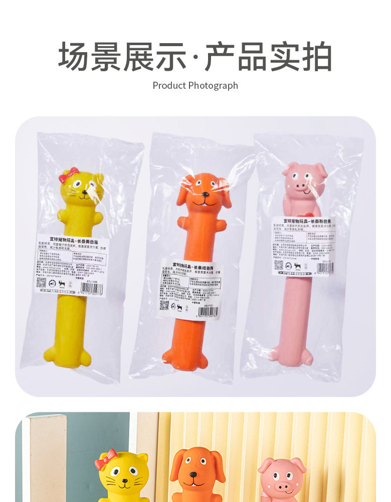 宜特宠物狗狗乳胶发声玩具长条卡通动物造型互动解闷磨牙宠物玩具