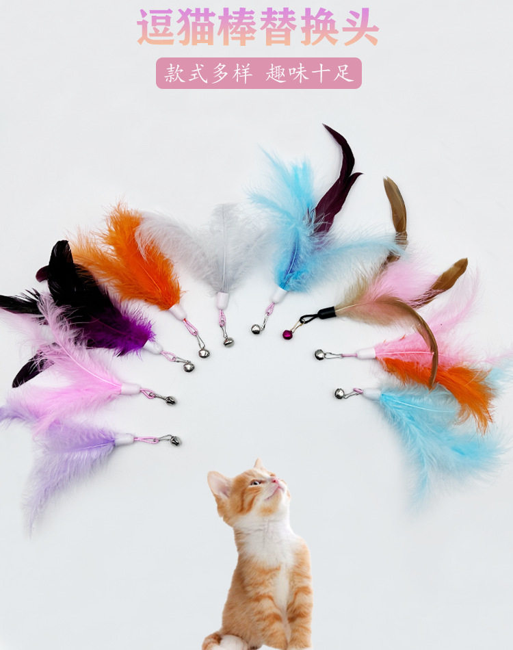 猫玩具逗猫棒羽毛铃铛替换头宠物毛绒玩具逗猫神器解闷宠物玩具