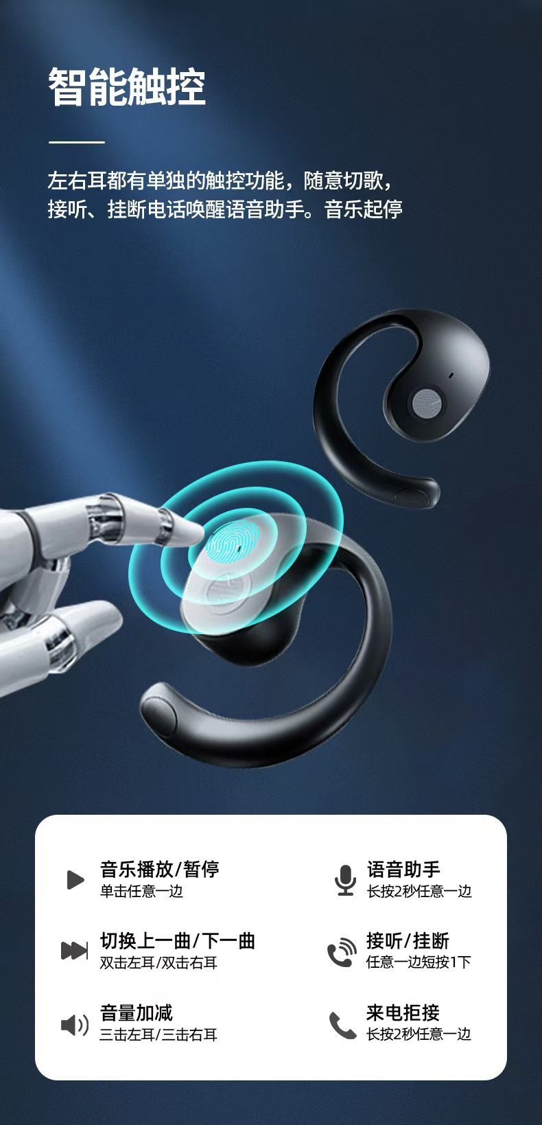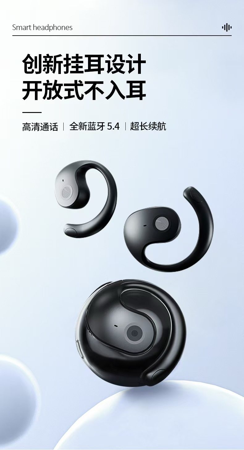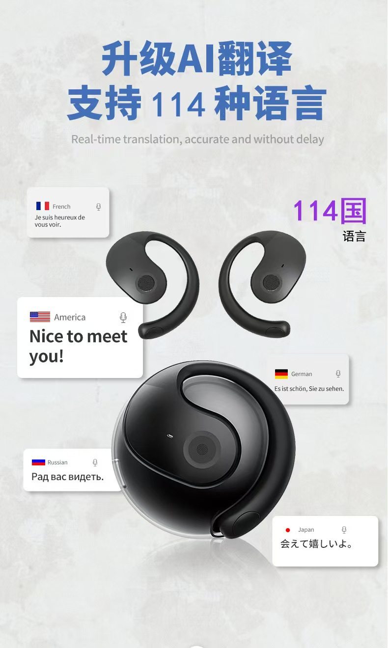 新款小椰球蓝牙耳机无线挂耳式超长续航降噪TK跨境爆款AI翻译耳机
