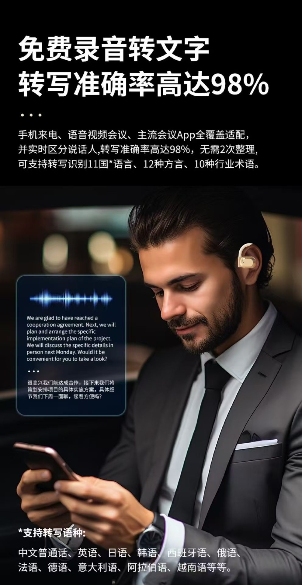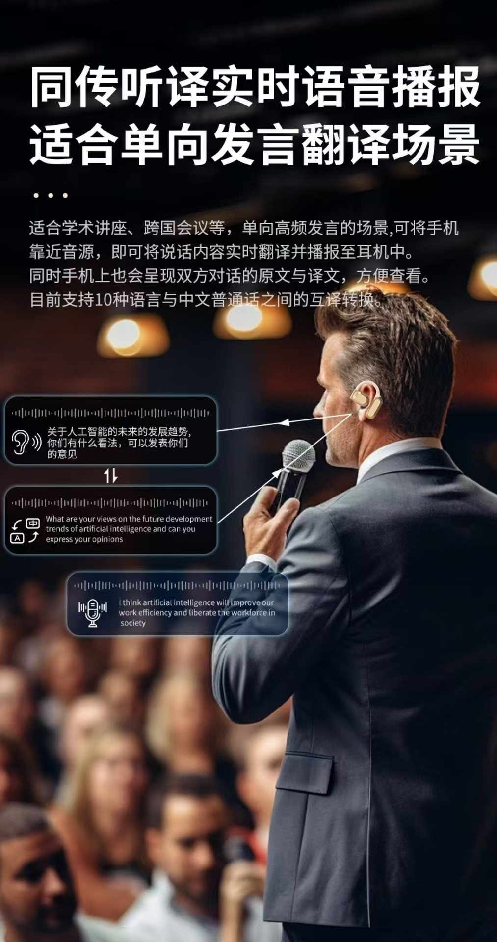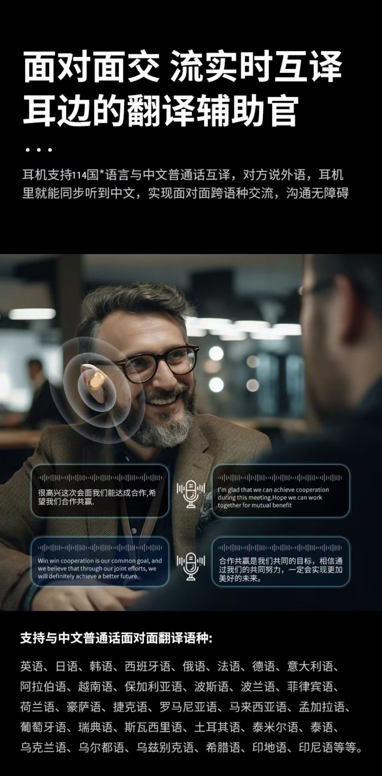 新款小椰球蓝牙耳机无线挂耳式超长续航降噪TK跨境爆款AI翻译耳机