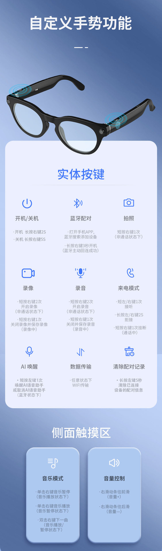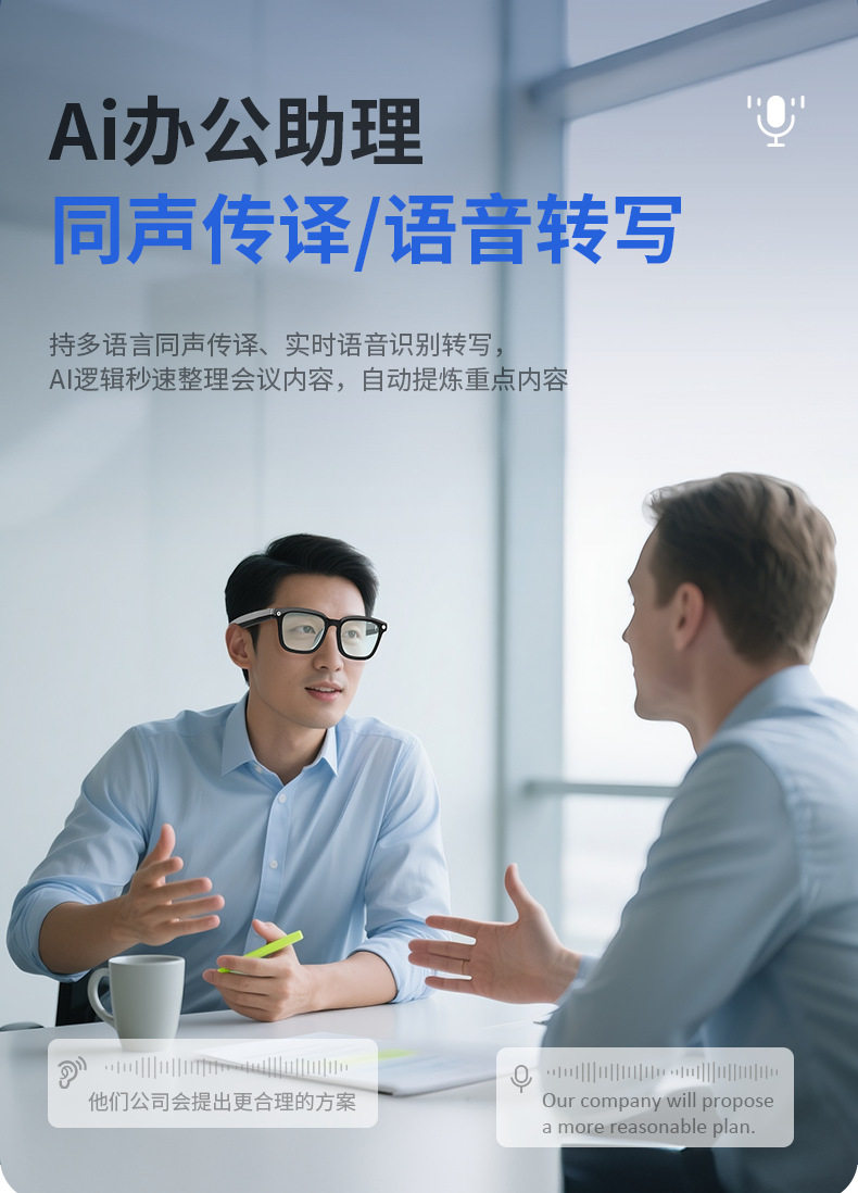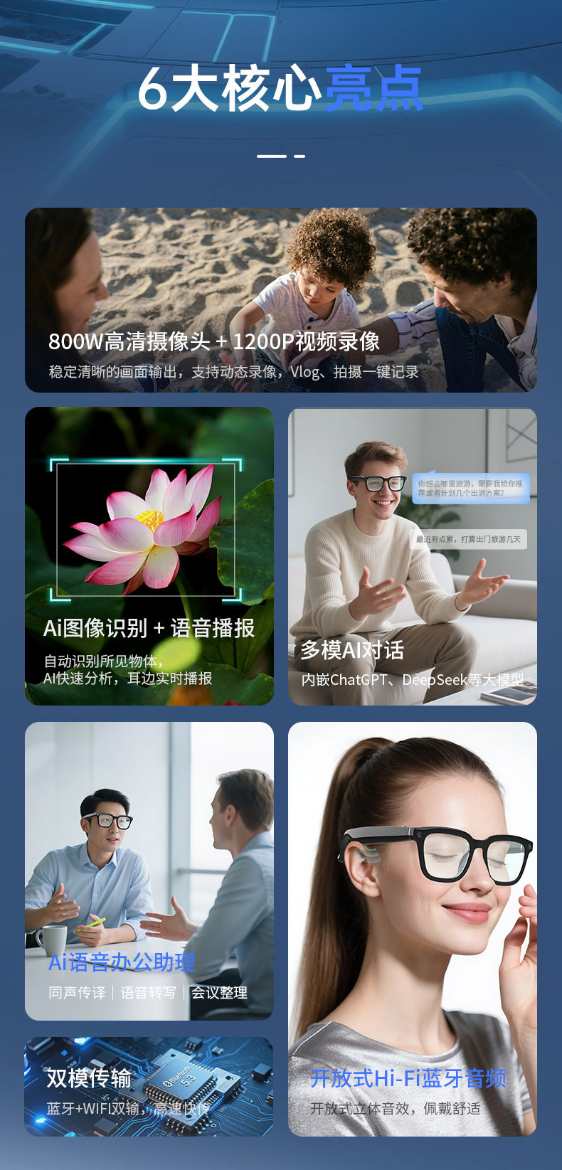 智能AI翻译眼镜同声传译 2k高清800万像素摄像 拍照直播听歌录像