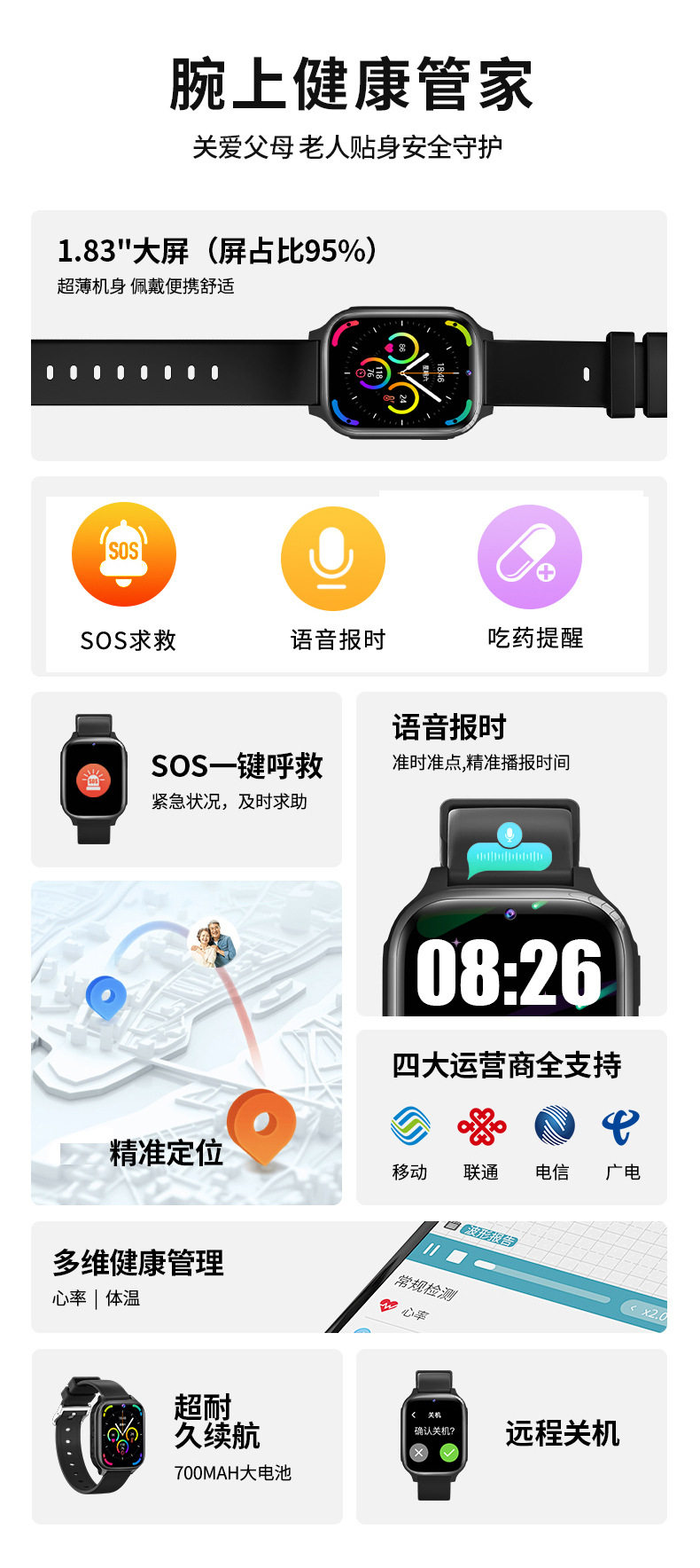 华强北4G老人儿童SOS一键呼叫血压男可插卡腕表电话智能手表手环