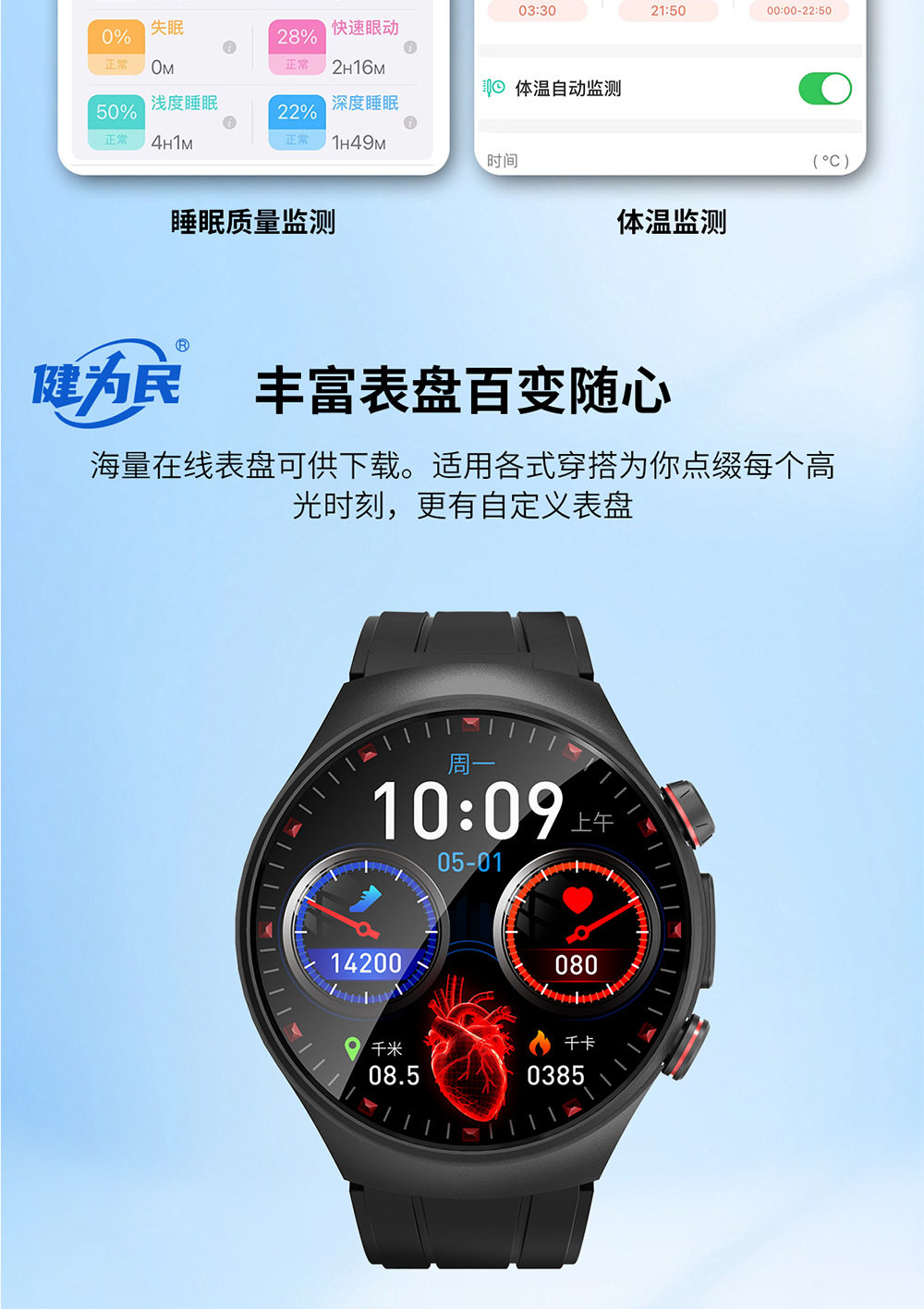跨境专供血压多功能电子手表智能手表睡眠健康监测手表运动手环