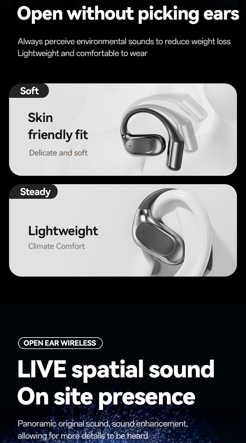 新款AI翻译运动蓝牙耳机不入耳挂耳式无线高音质超长续航触控设计