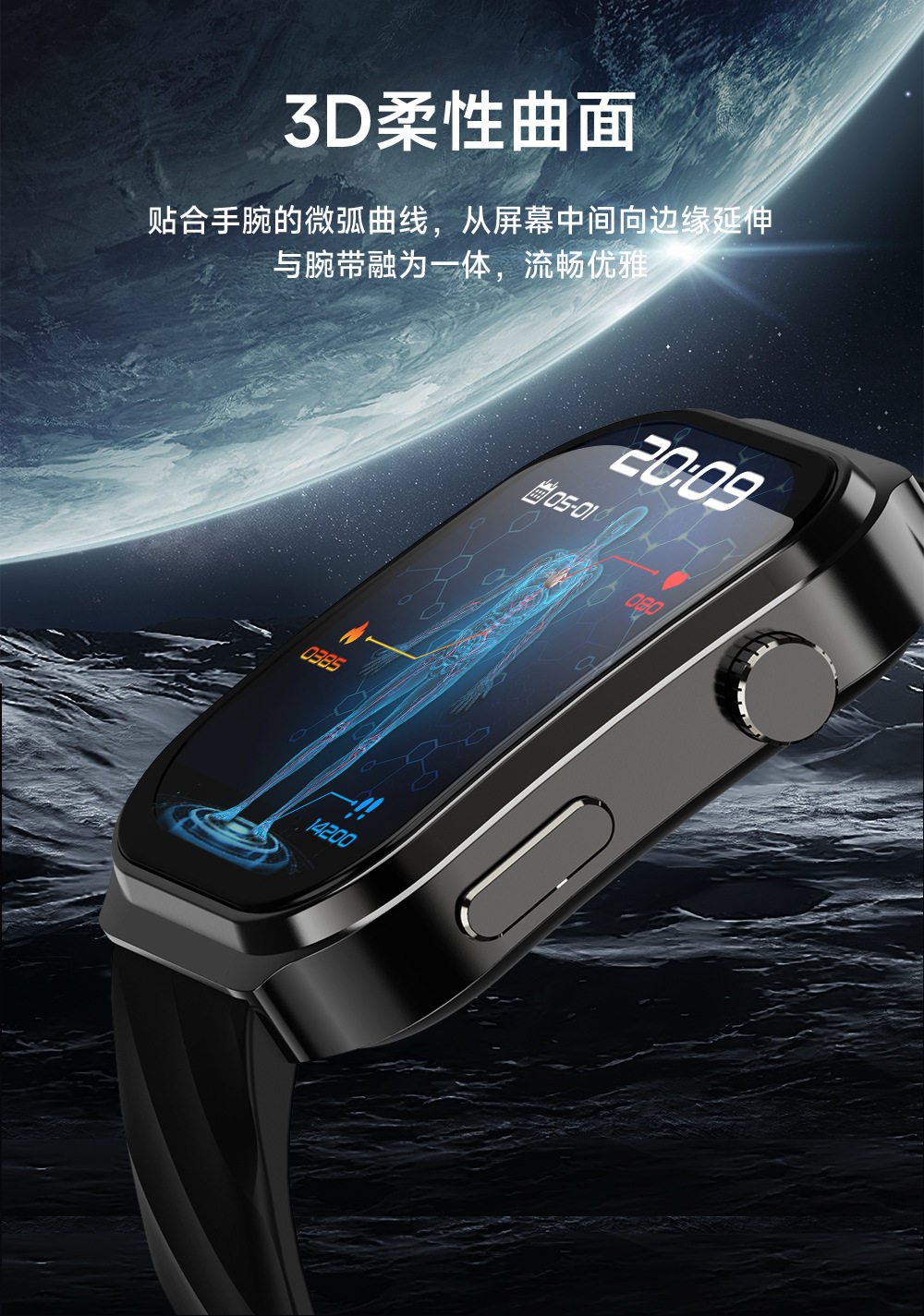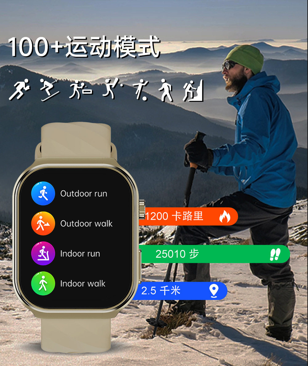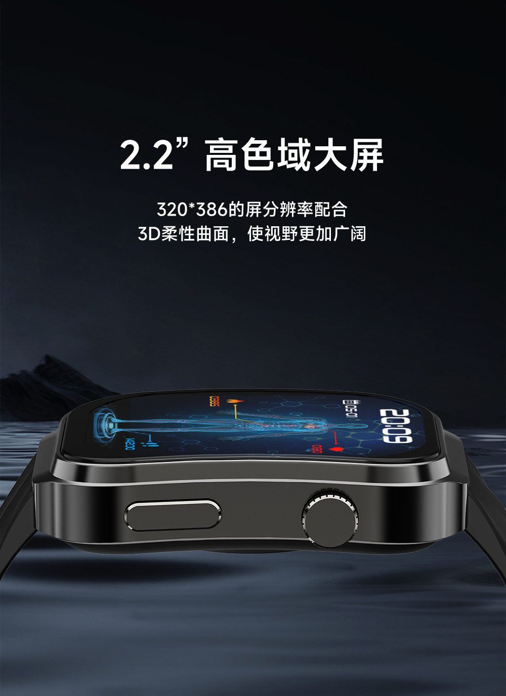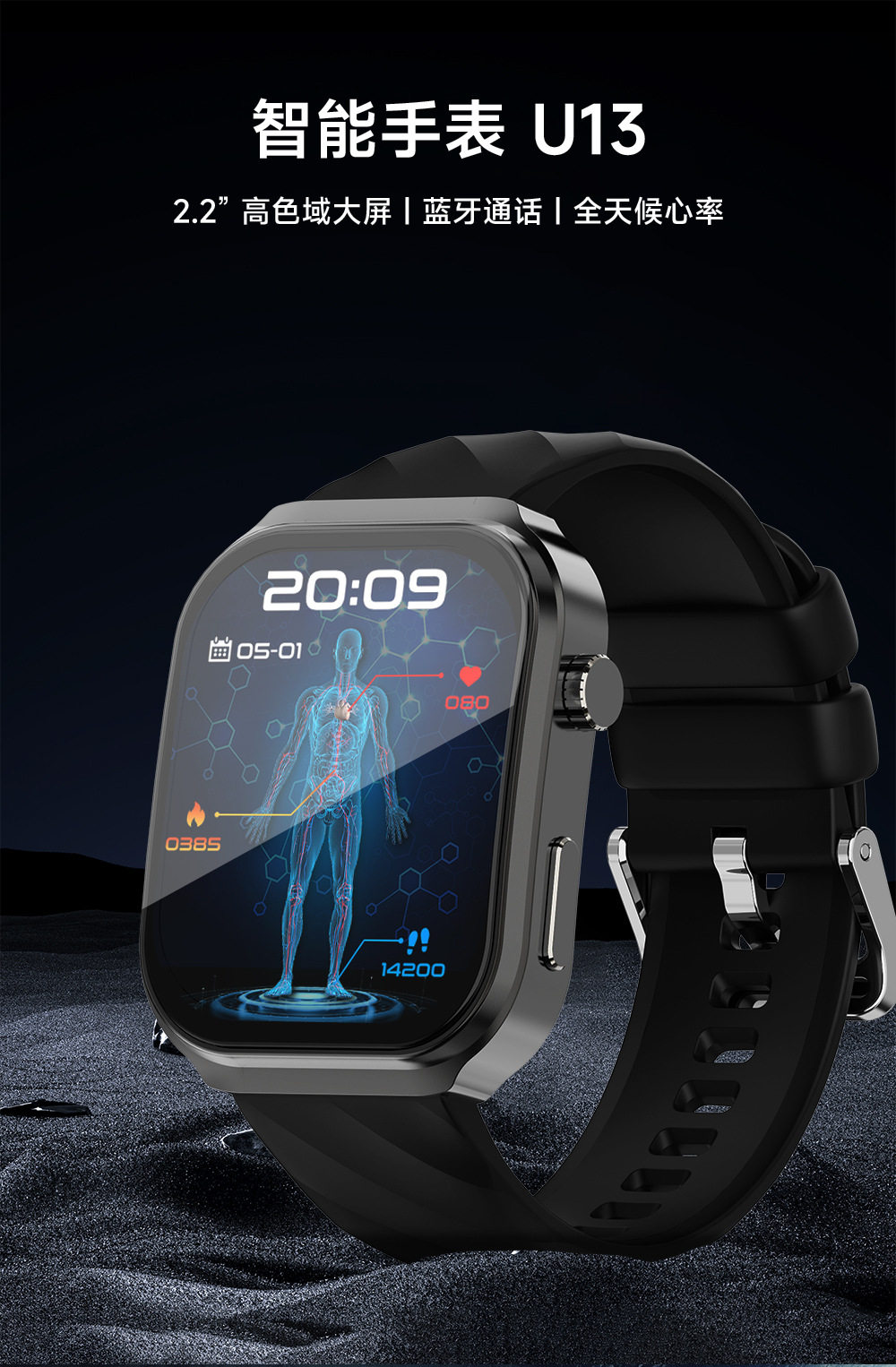 华强北新款运动手表3D曲面屏2.2寸蓝牙通话健康监测U13智能手表