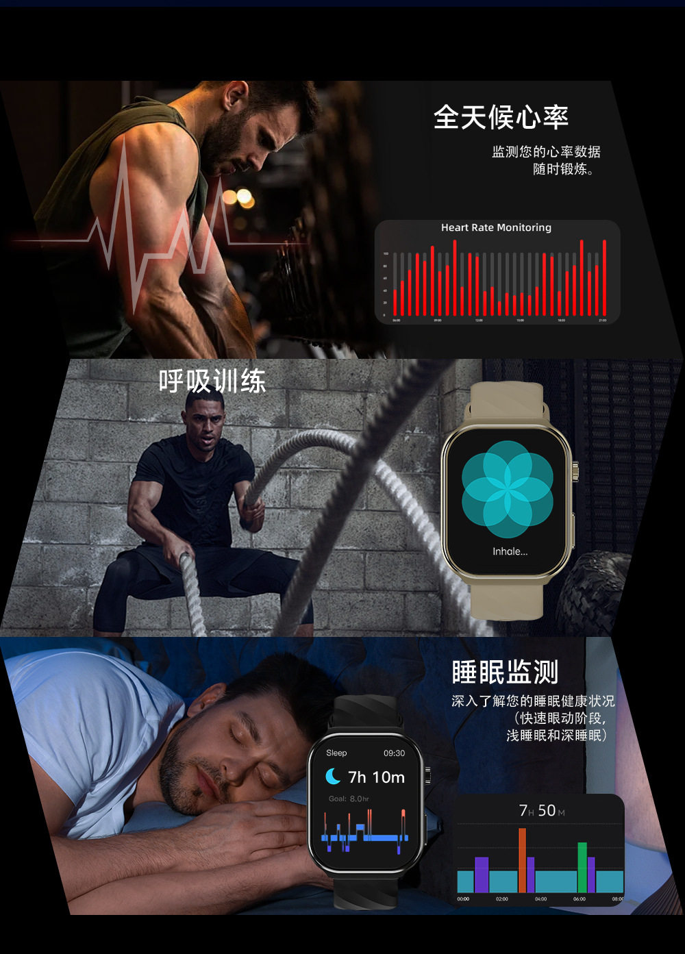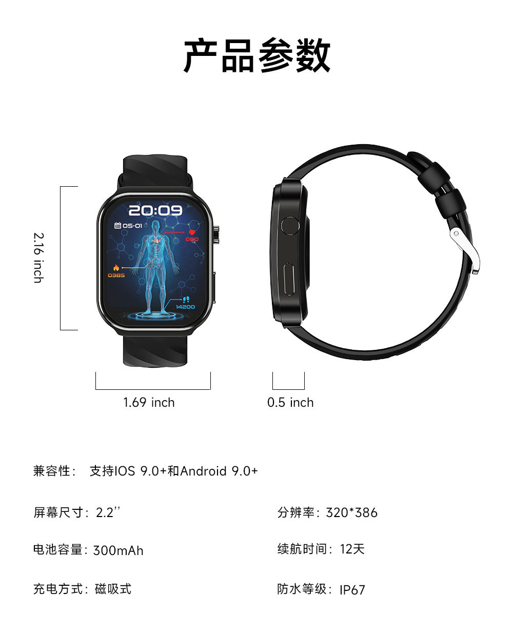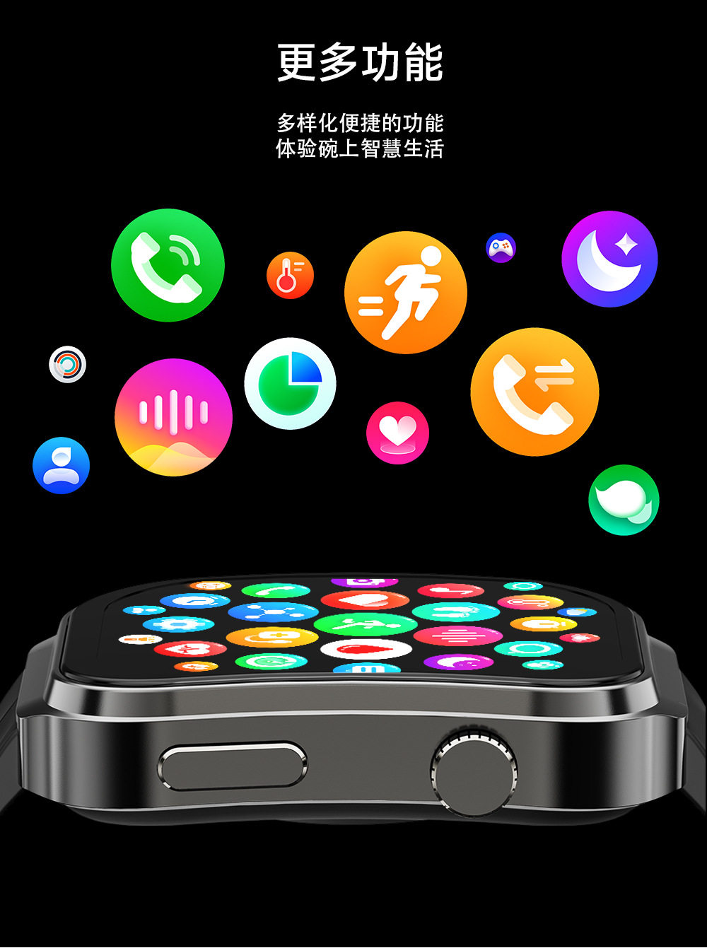 华强北新款运动手表3D曲面屏2.2寸蓝牙通话健康监测U13智能手表