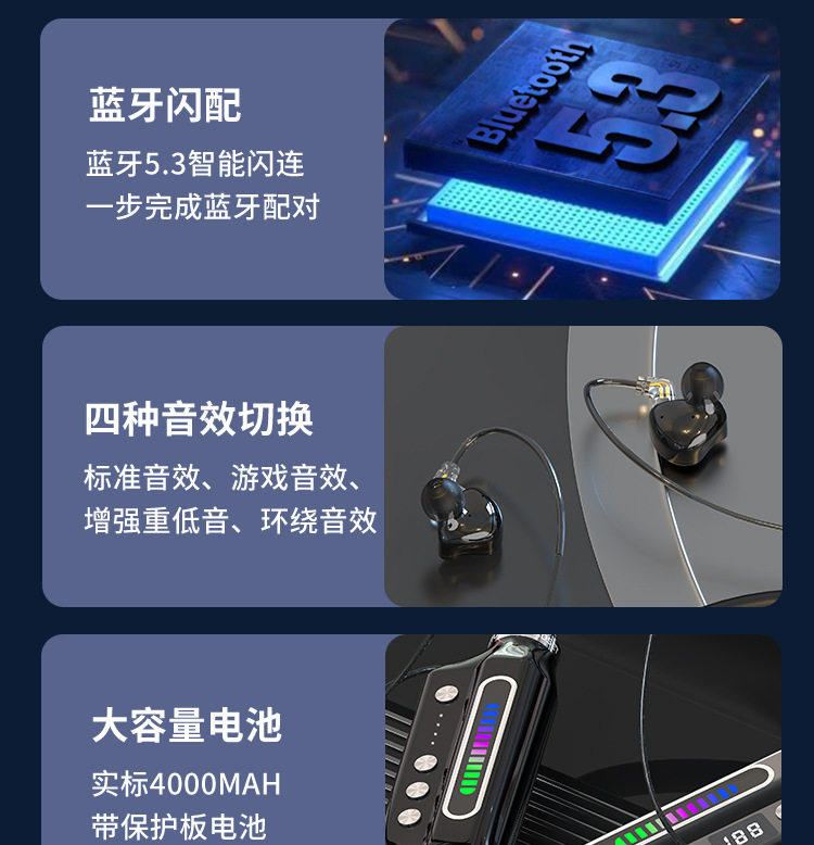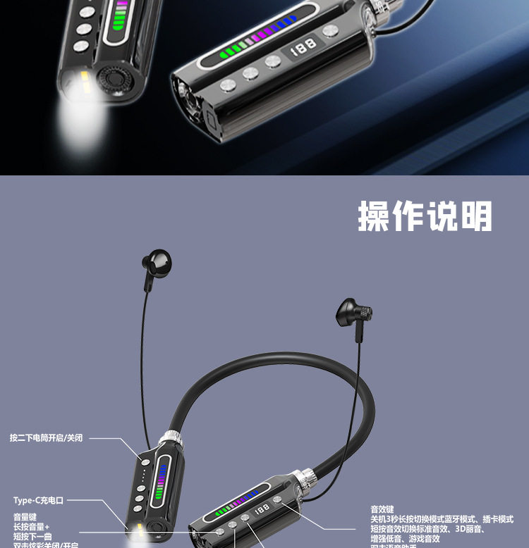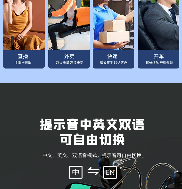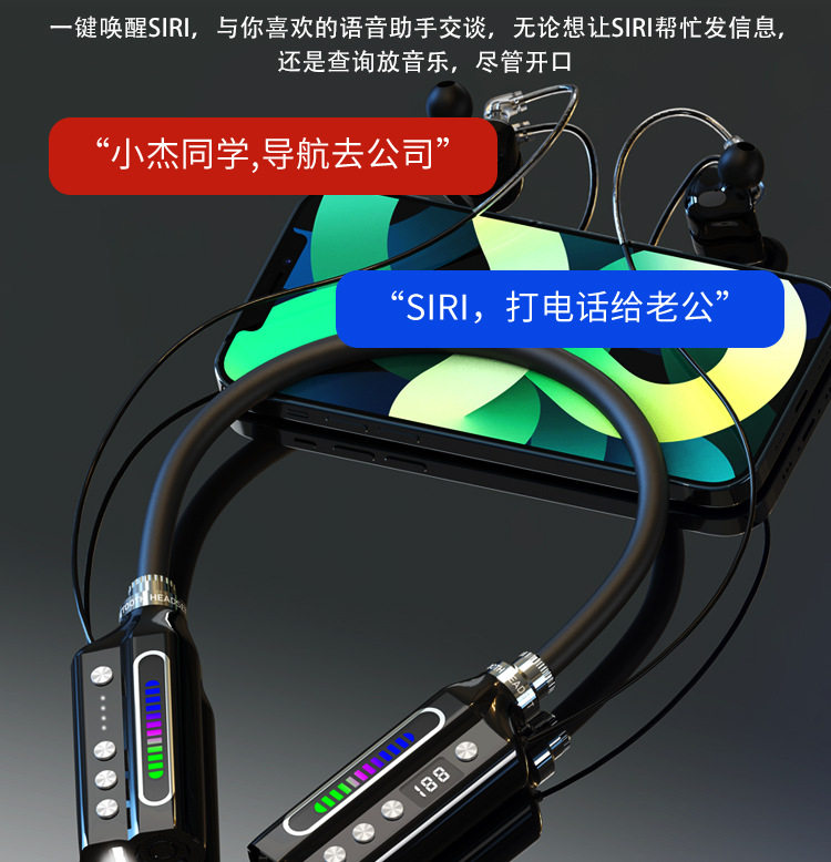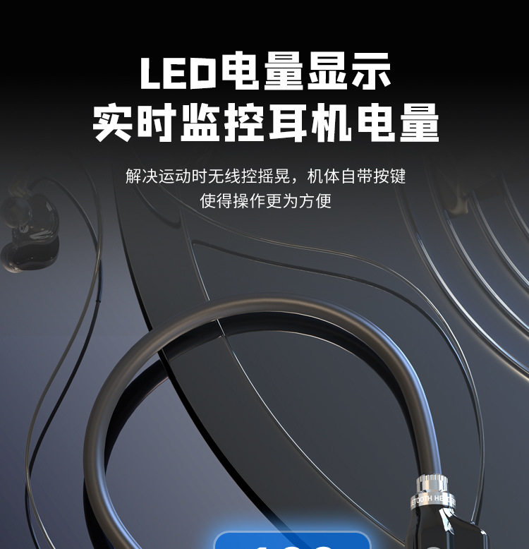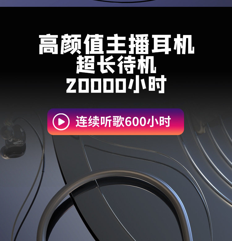 高颜值直播用挂脖蓝牙耳机智能声控电量数字显示超长续航降噪舒适