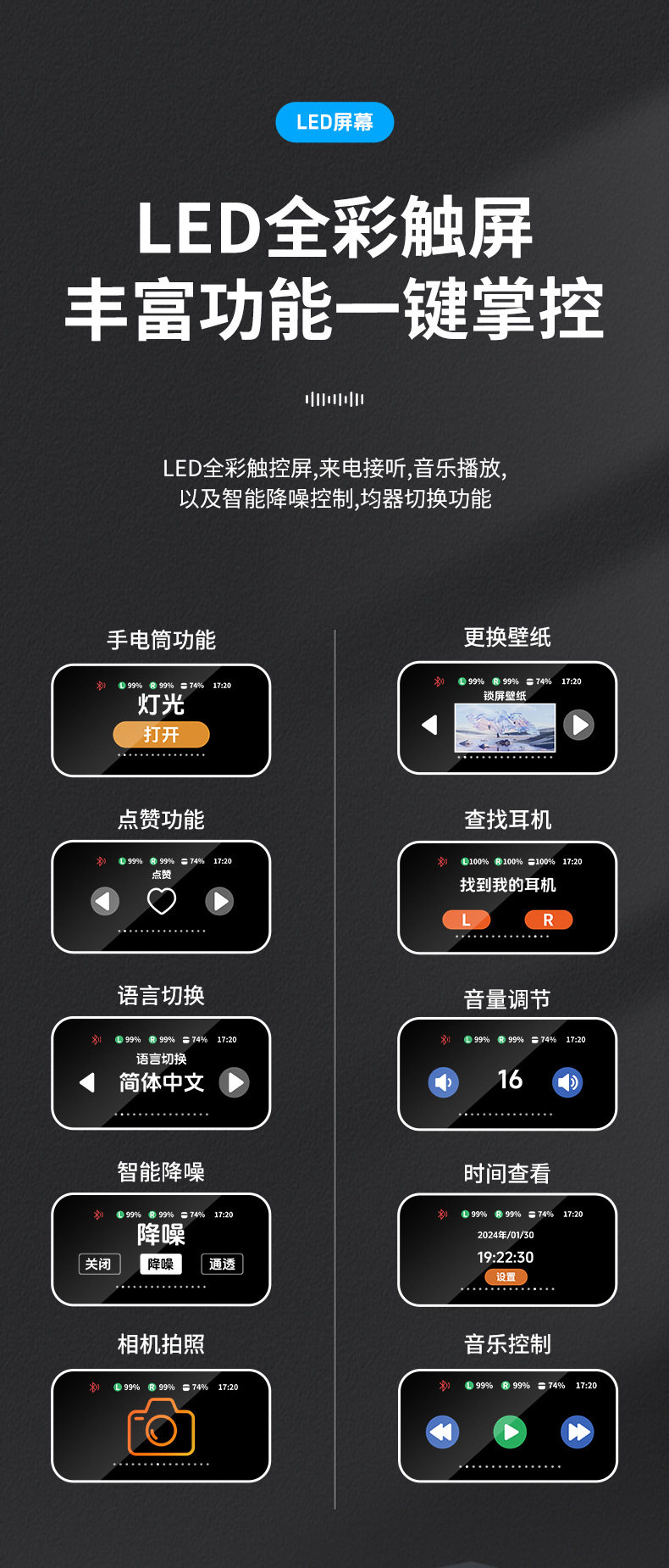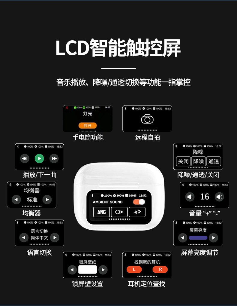 2025跨境爆款蓝牙耳机 a9pro无线Ai翻译智能降噪手机通用彩屏耳机