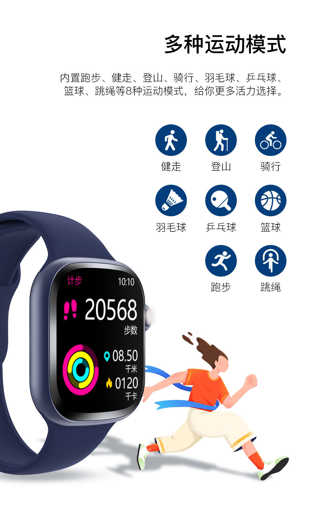智能手表TB104新款运动手表蓝牙心率电子手表agm手表