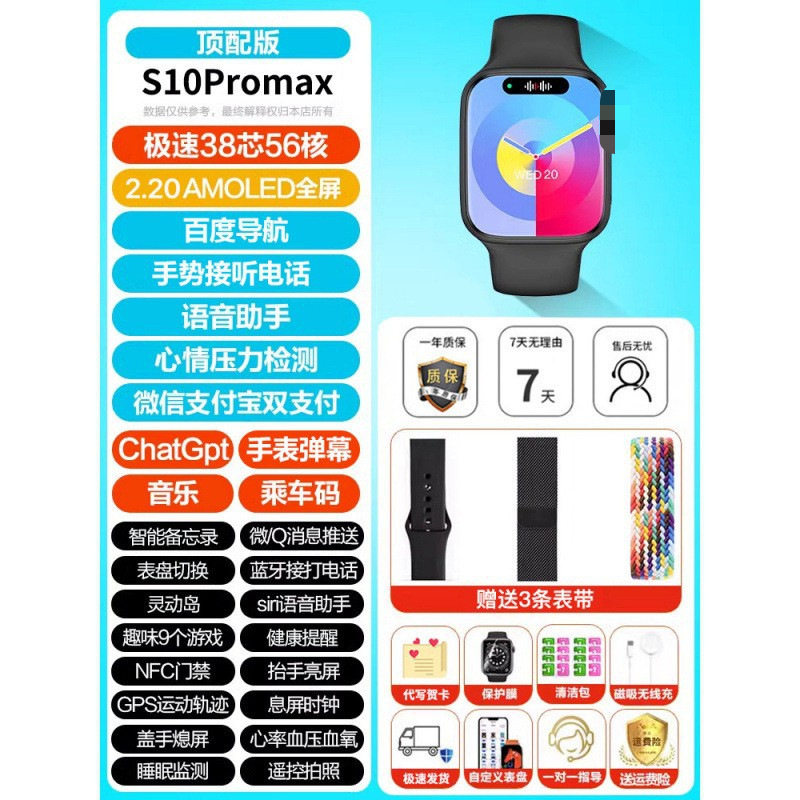 智能手表华强北watchS10新款顶配离线支付测心率血压血糖运动NFC