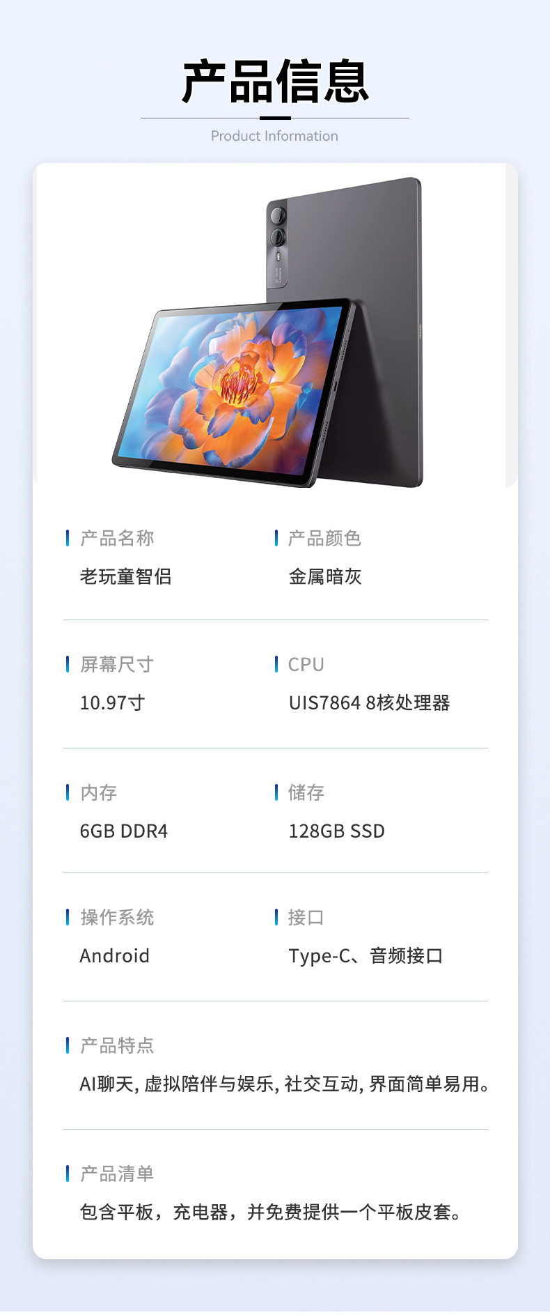 老玩童智侣自研AI智能平板电脑AI语音娱乐游戏社交养老陪伴机器人