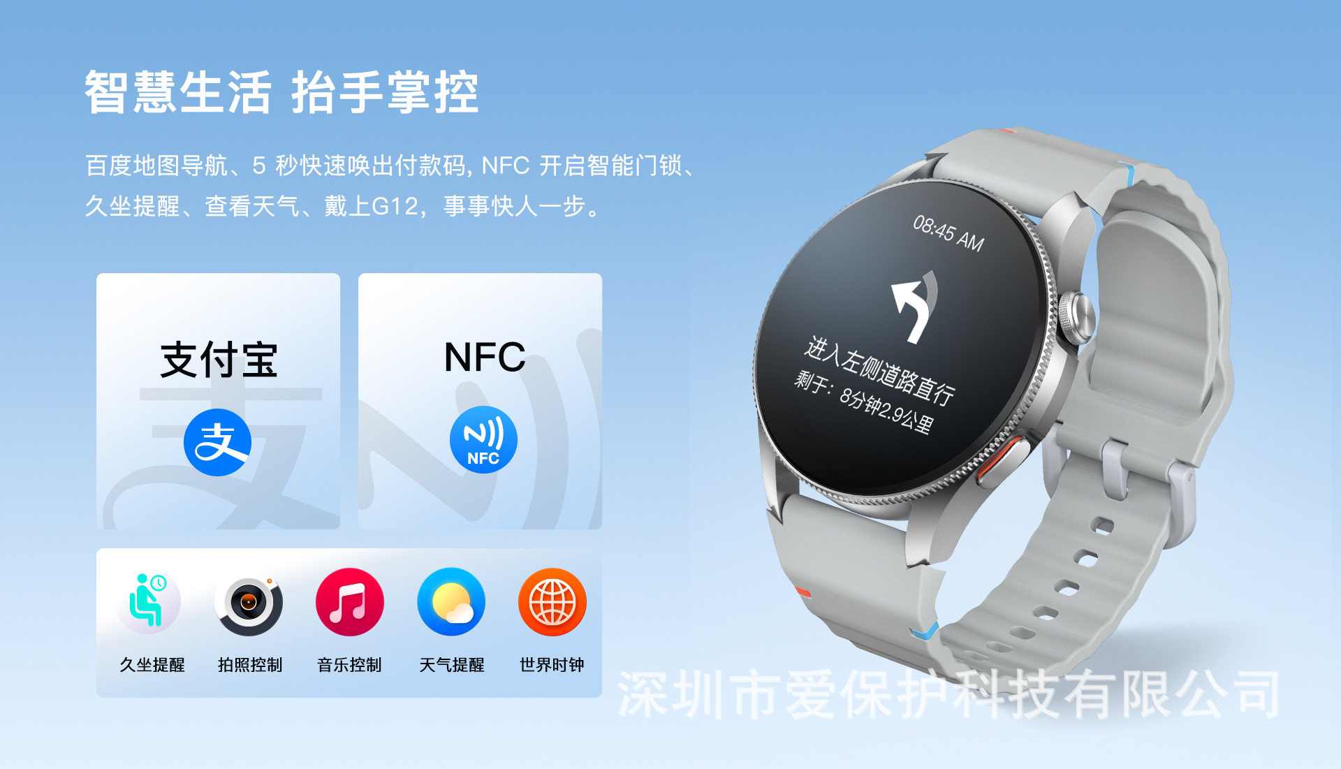 G12GPS跨境新品智能手表蓝牙通话多功能计步数运动3ATM防水手表