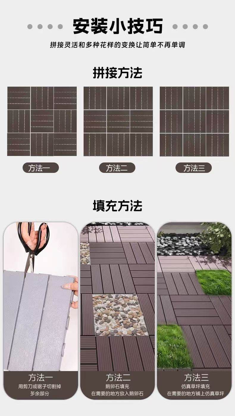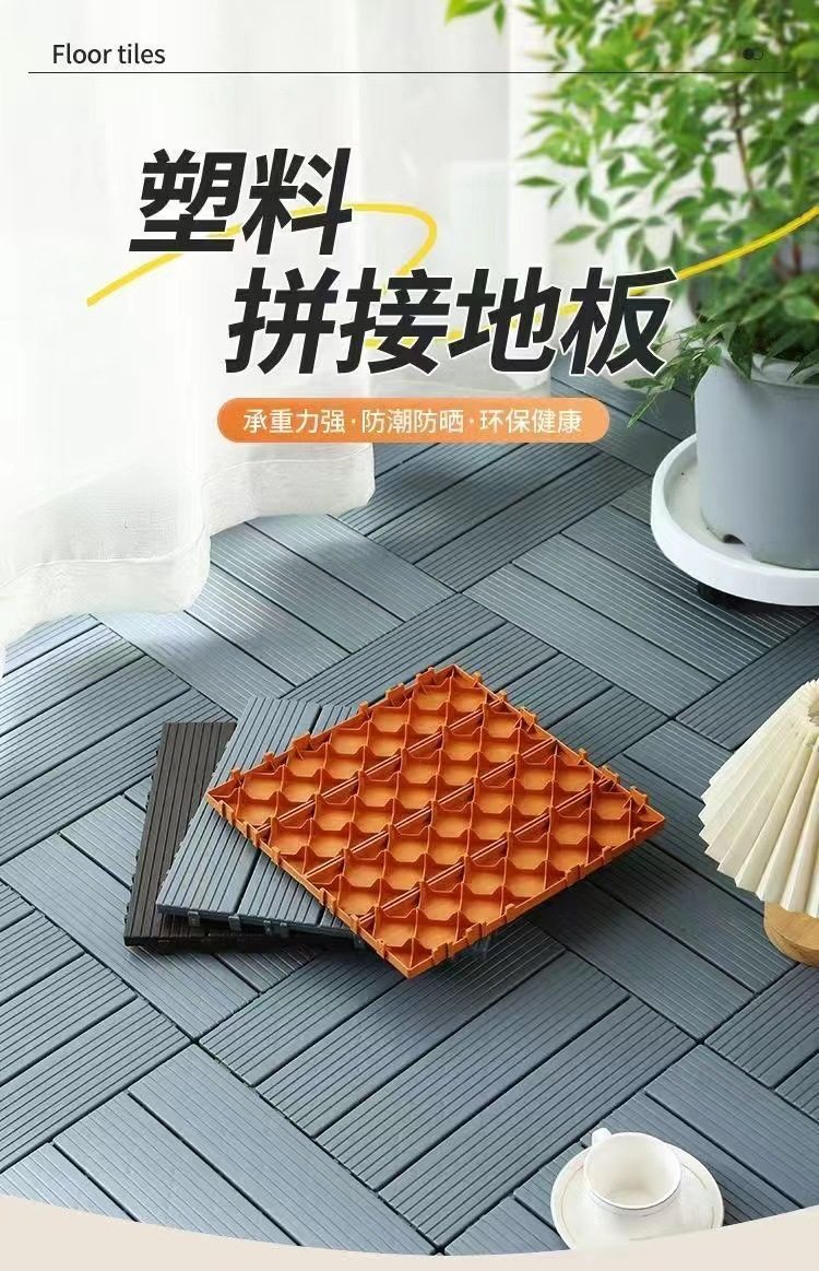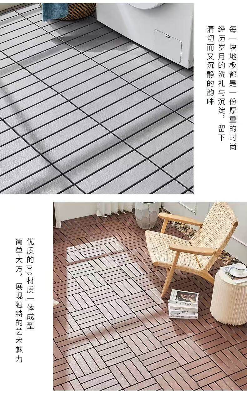 户外塑料地板自拼阳台露台木地板庭院花园改造自铺木塑塑料地板厂