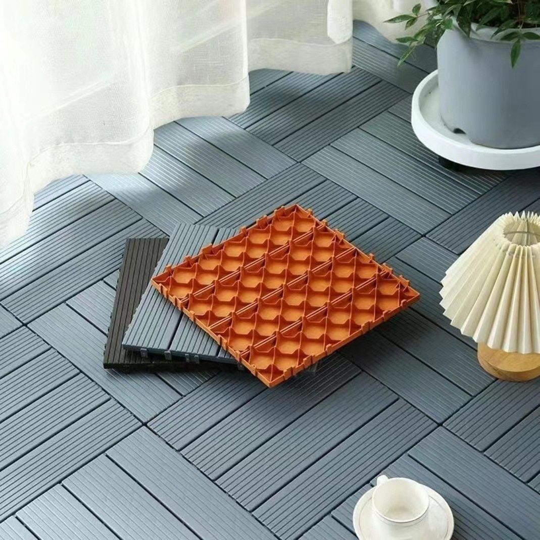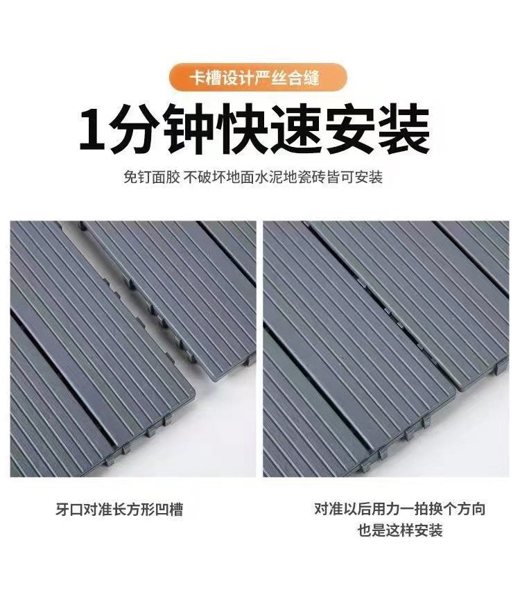 塑料地板厂家户外阳台地面铺设露台庭院改造室外自铺拼接木塑地板