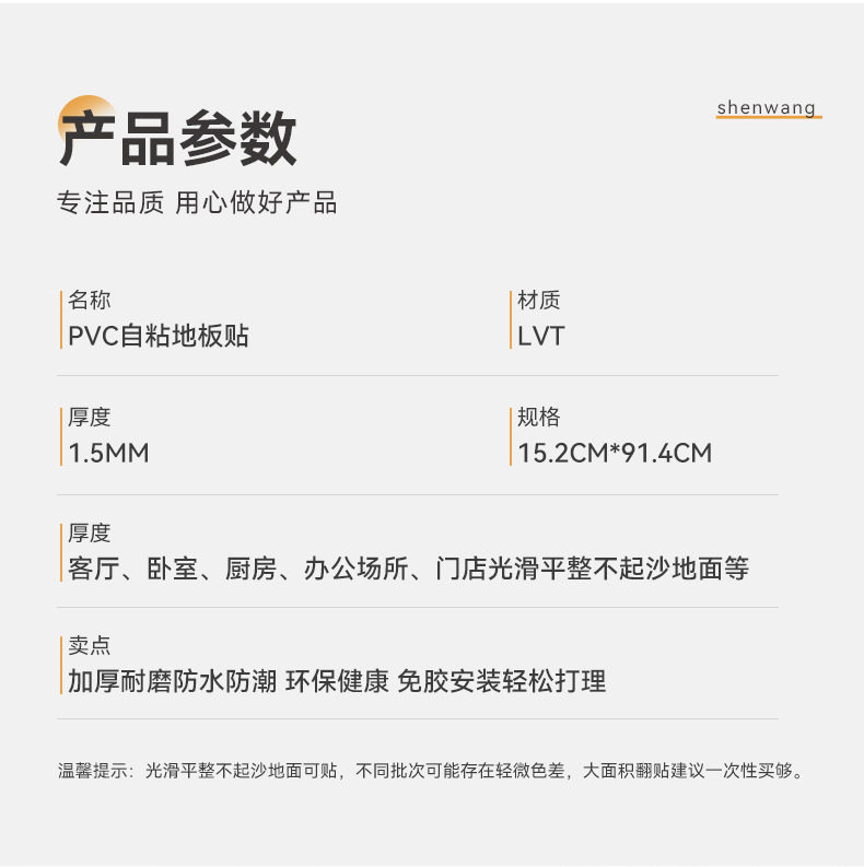 申旺|PVC塑胶自粘地板贴家用客厅卧室装修地板革水泥地专用加厚