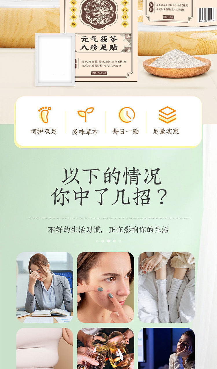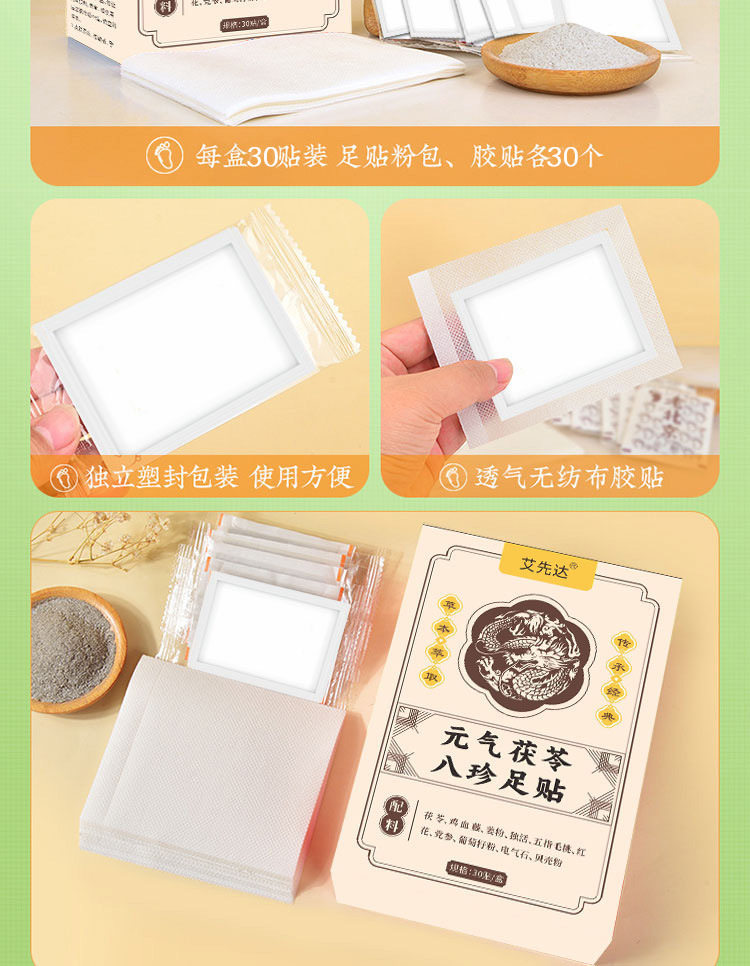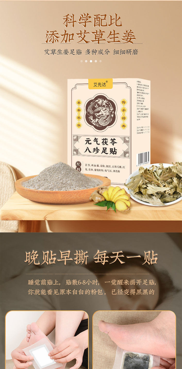 发热足贴元气茯苓八珍足贴老北京生姜足底贴脚底草本热敷足贴