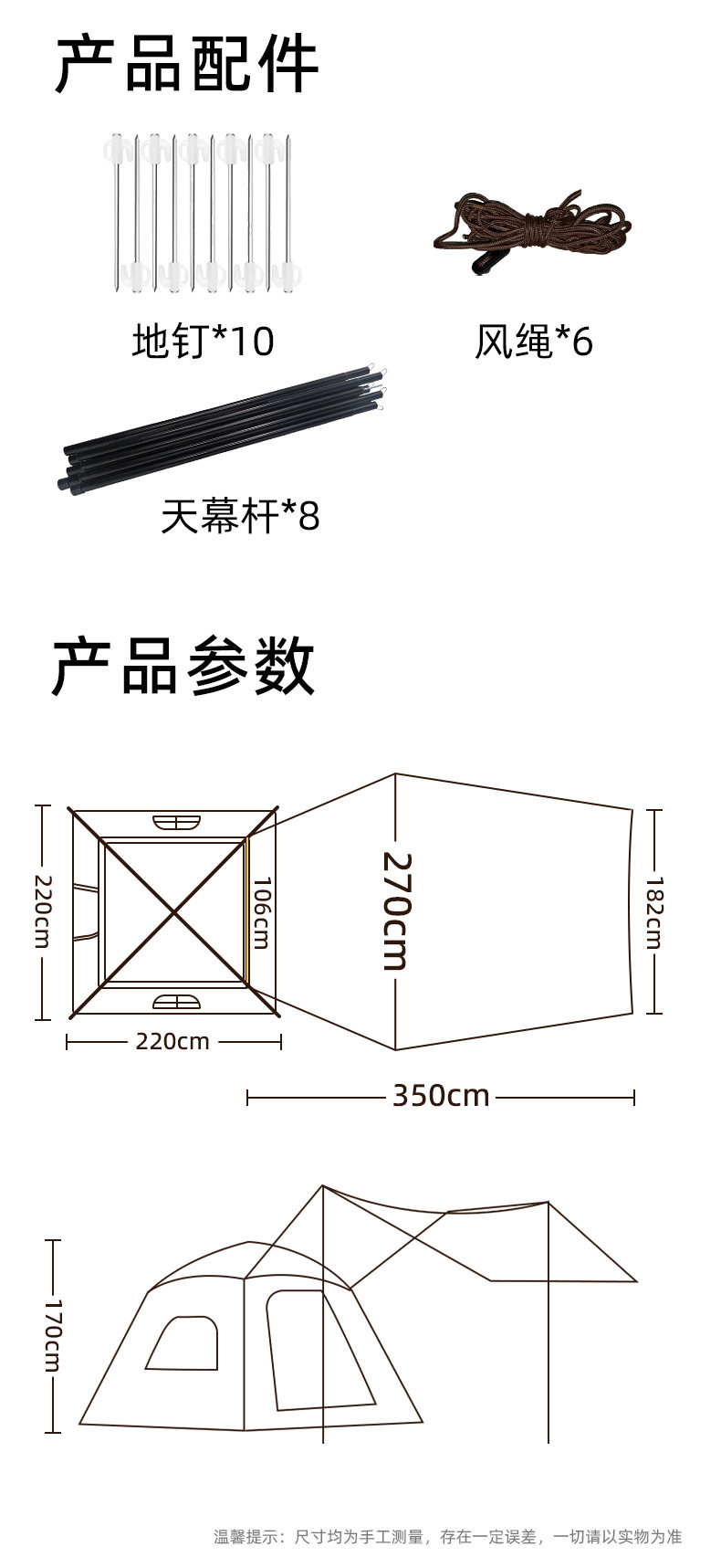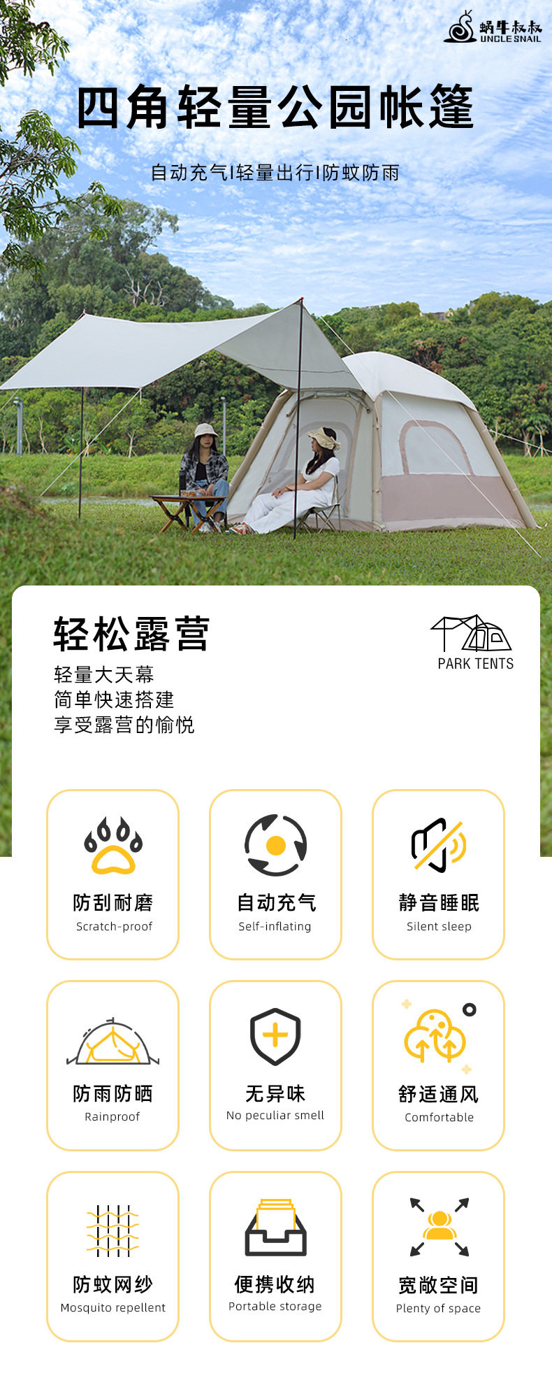户外露营自动充气帐篷蜗牛叔叔野外防晒便携式折叠帐篷天幕二合一