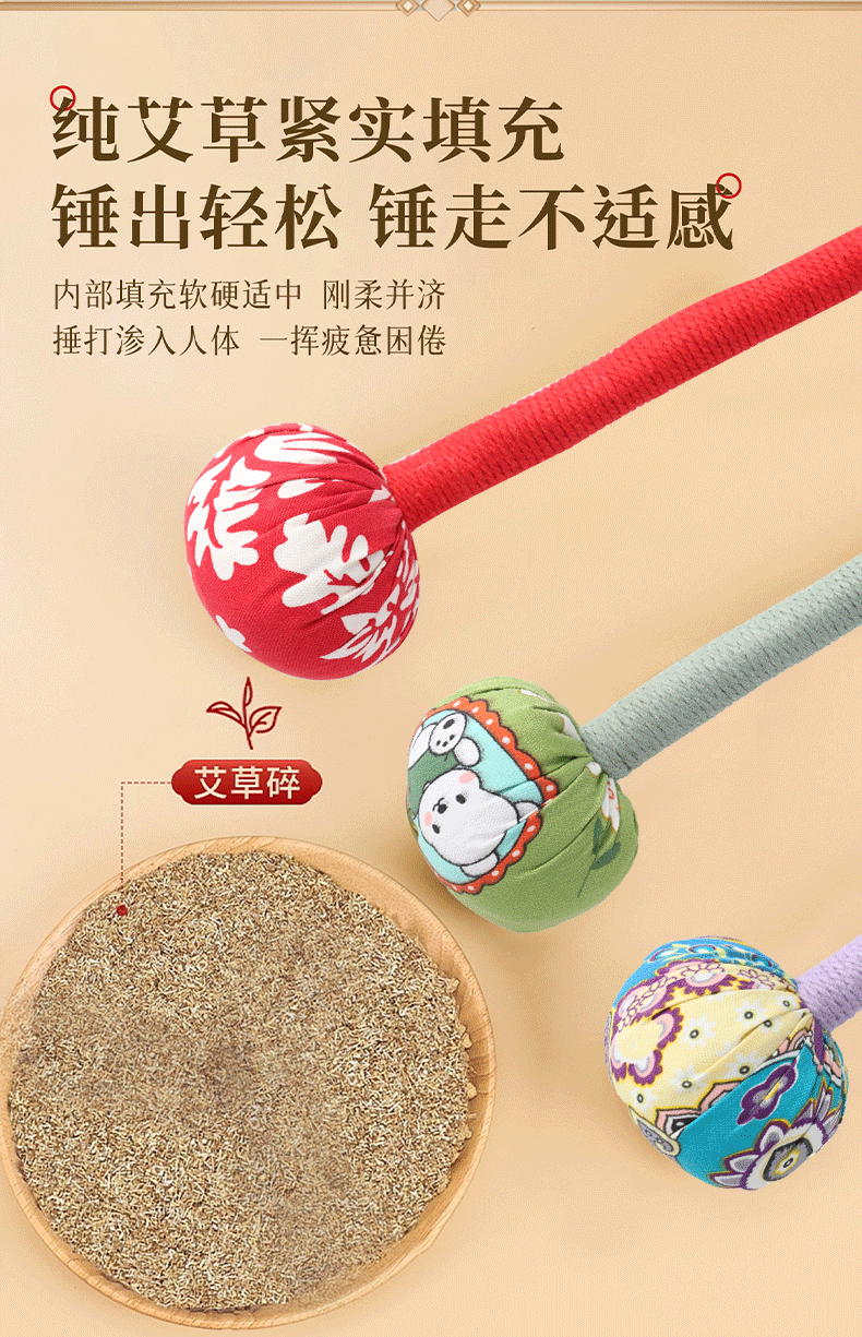艾草锤艾灸锤经络敲打锤拍八虚锤按摩锤肩敲打棒手工DIY伴手礼锤
