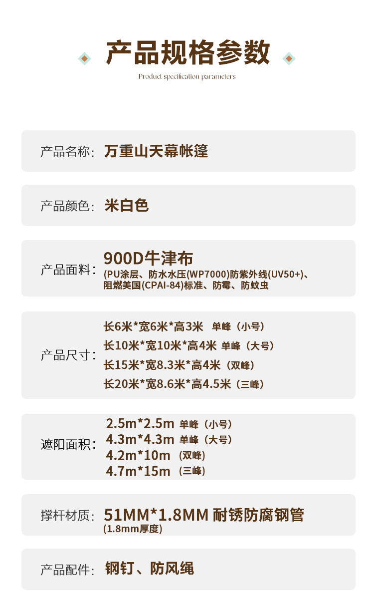 营地专用万重山天幕大型基地八爪帐篷单峰双峰三峰云顶天幕900D
