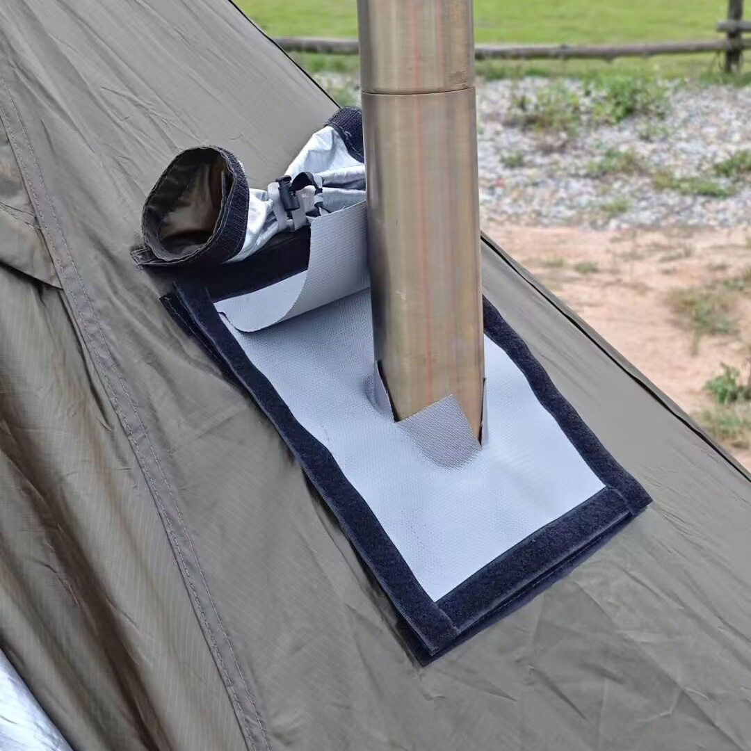 (功能:升级版烟囱片更有效的避免帐篷烫坏,大大增加帐篷寿命,强烈建议与柴火炉帐篷配合使用,玩户外就要玩的安全!)