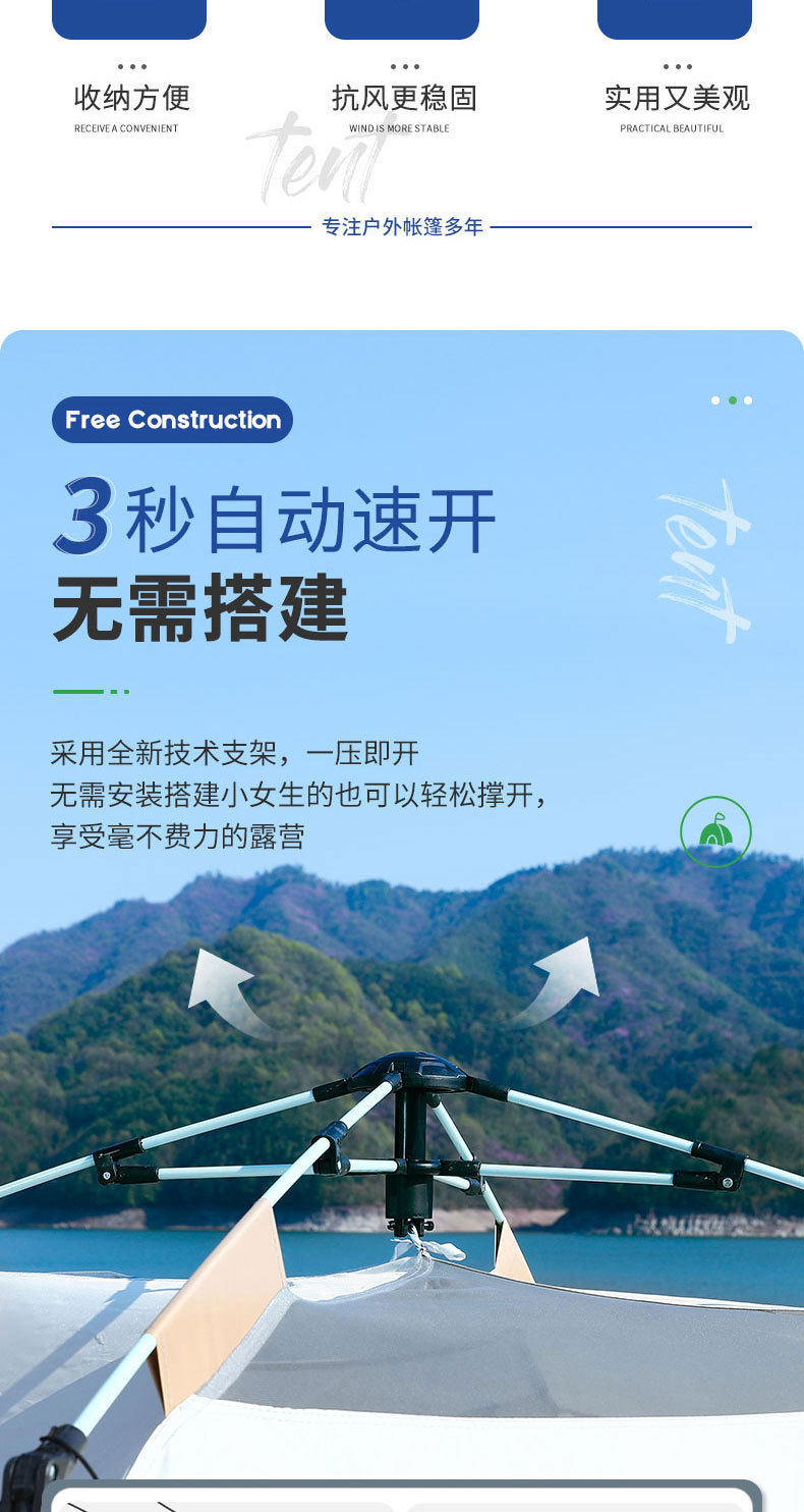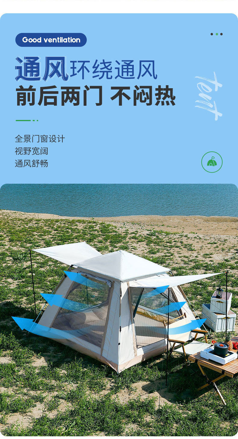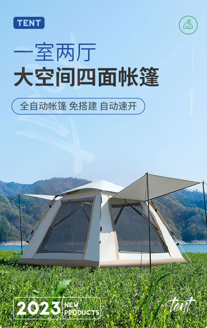 帐篷天幕露营3-4人折叠便携全自动速开遮阳防雨公园野营户外帐篷