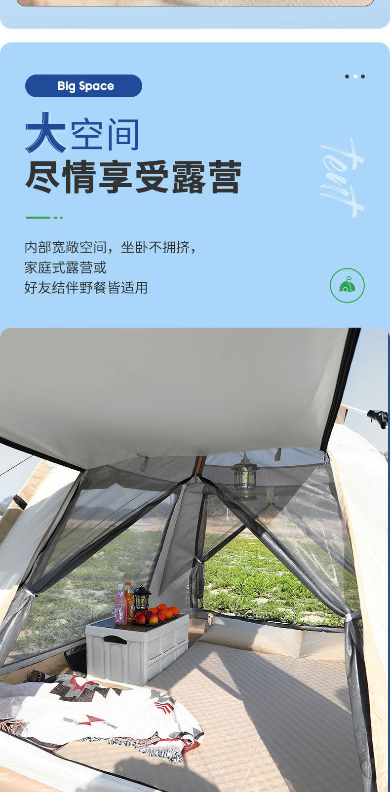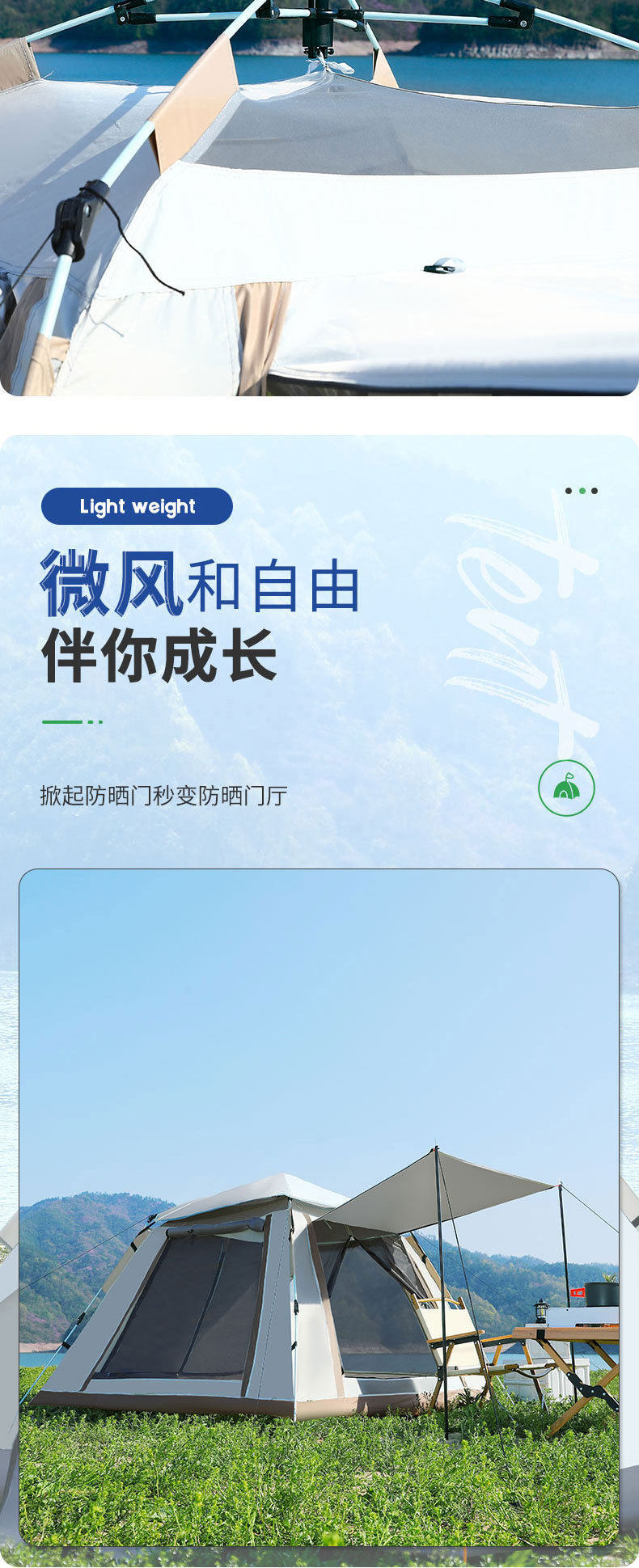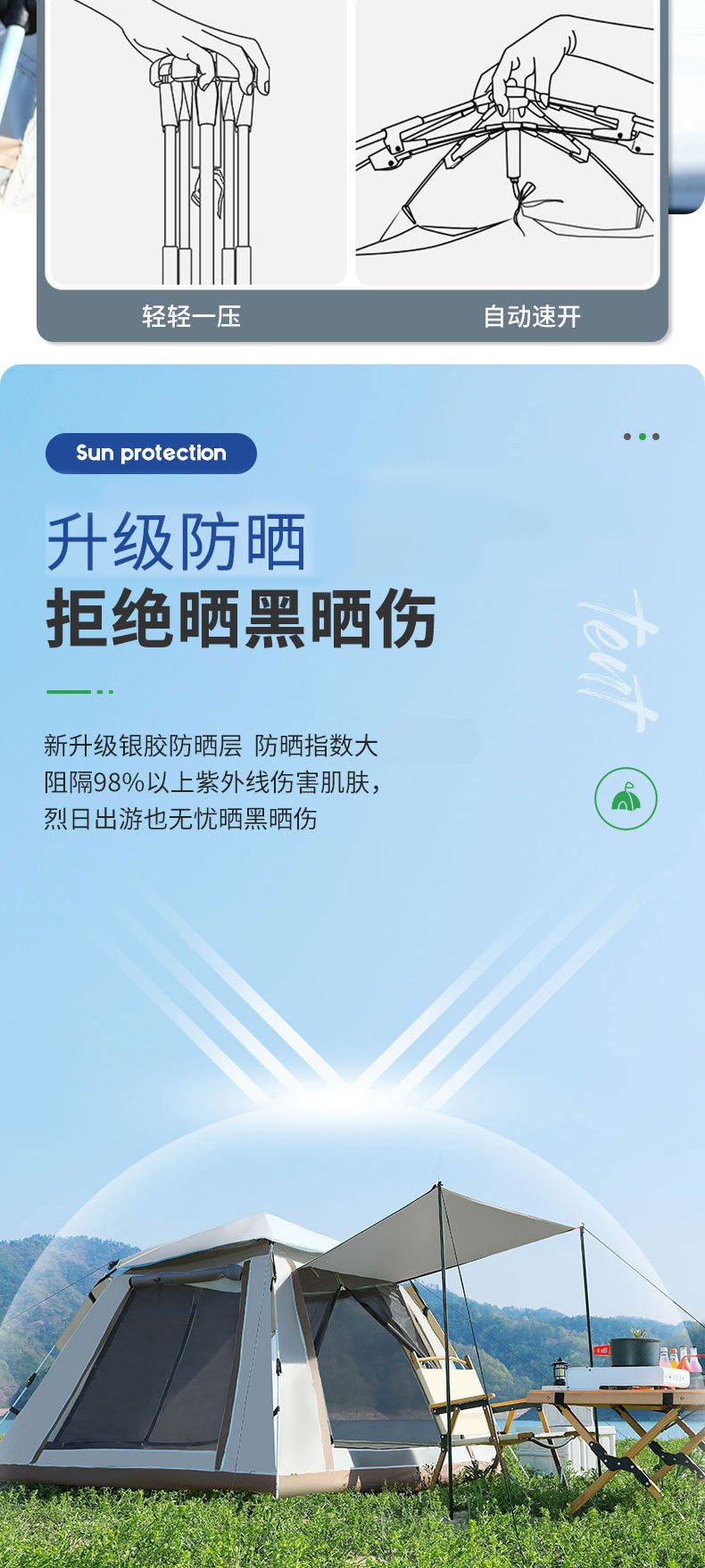 帐篷天幕露营3-4人折叠便携全自动速开遮阳防雨公园野营户外帐篷