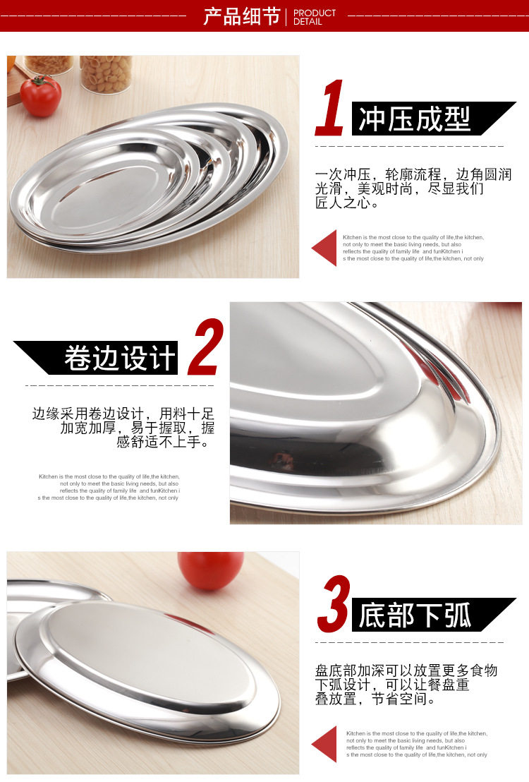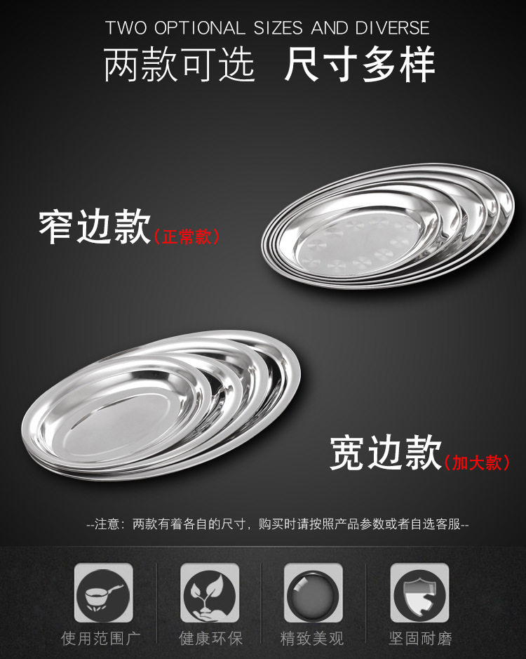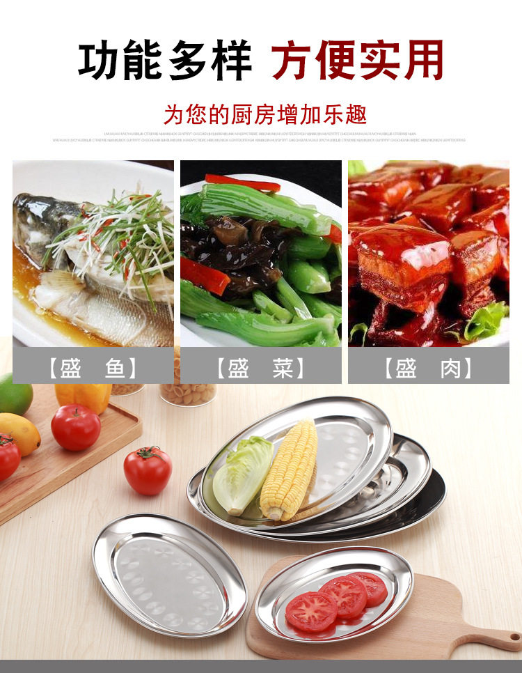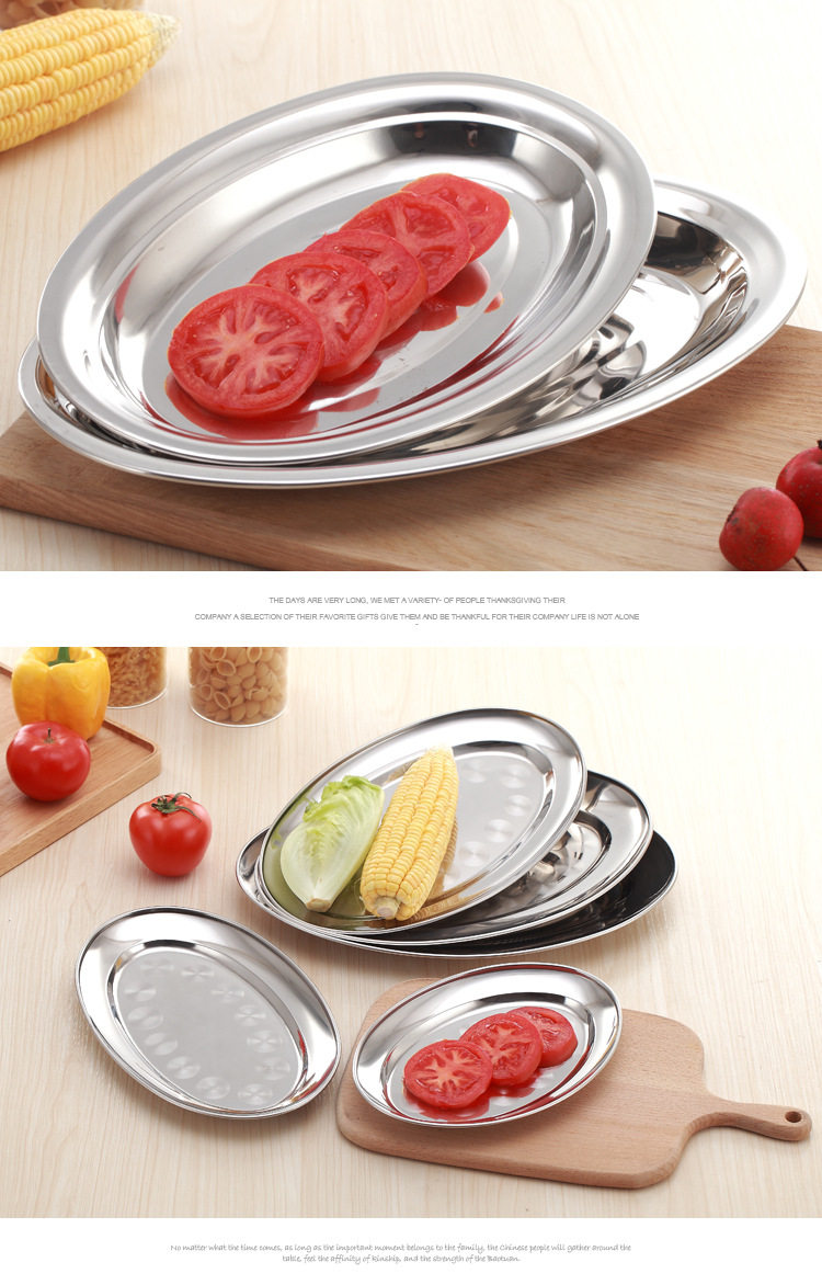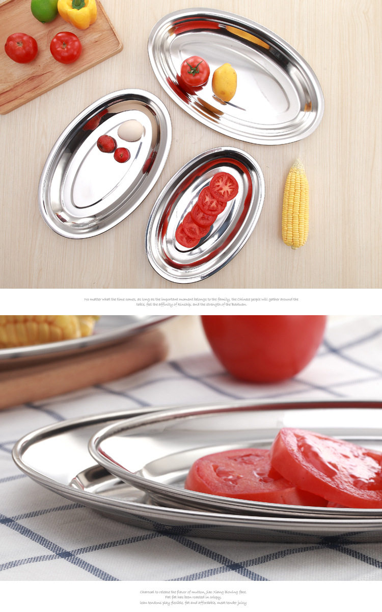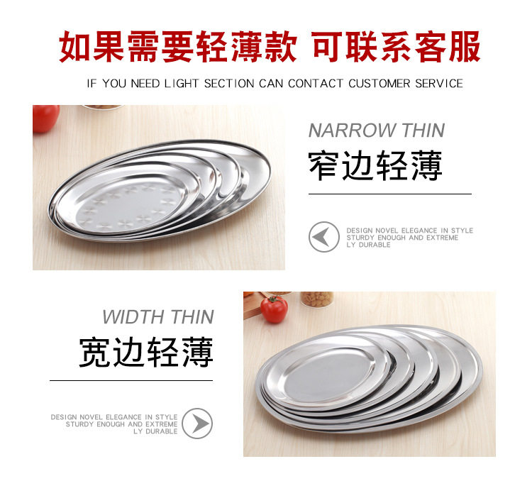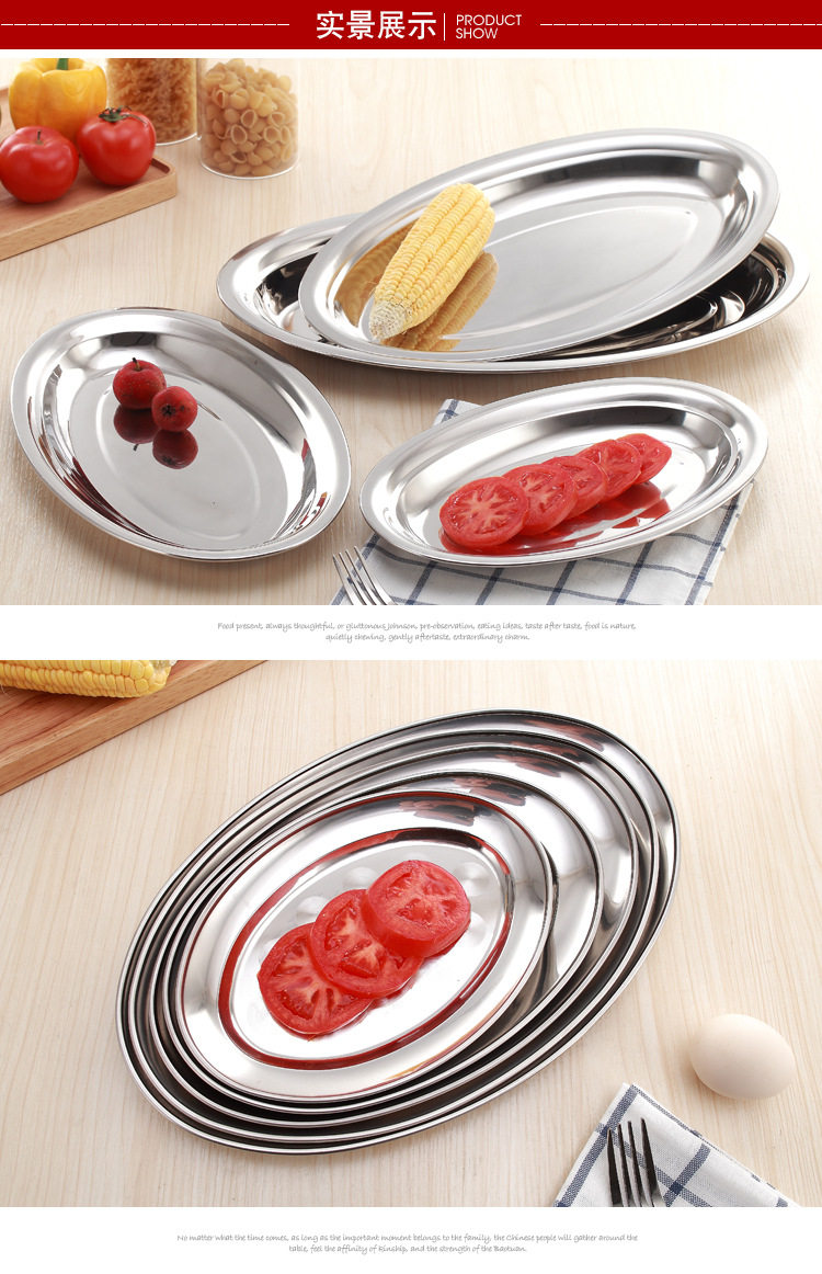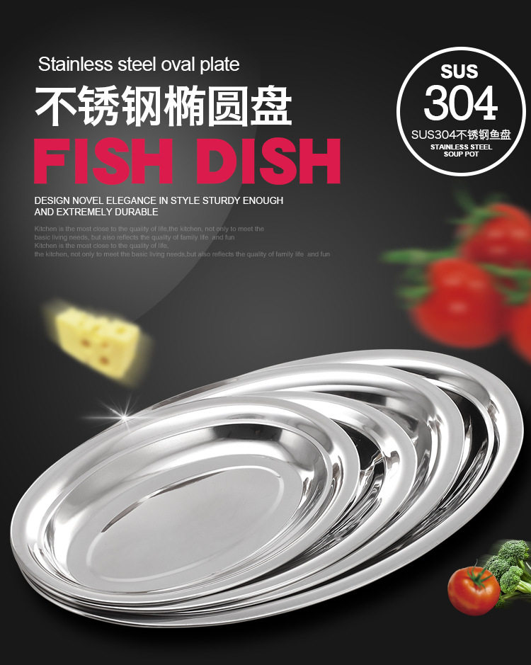 不锈钢无磁蛋形盘旦形浅盘肠粉盘餐盘餐具酒店餐厅菜盘家用鱼盘