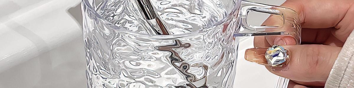 【加厚冰川纹轻奢漱口杯】情侣洗手间洗漱杯家用便携高颜值刷牙杯