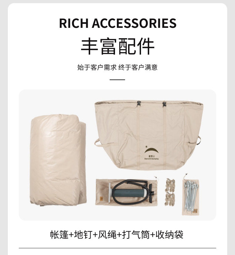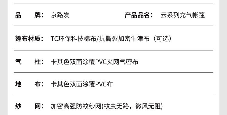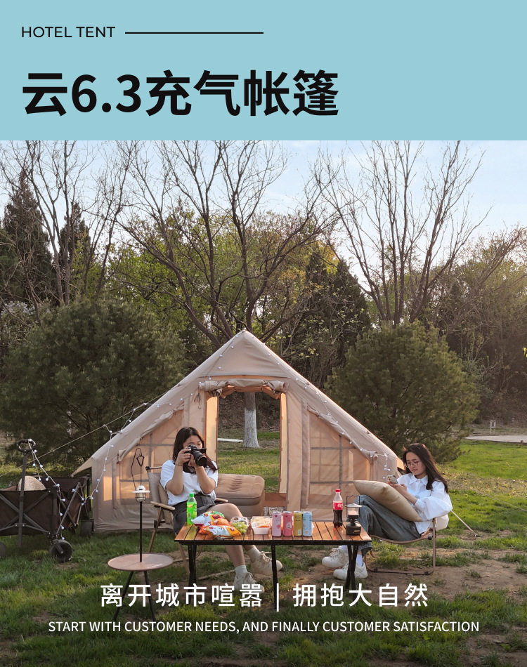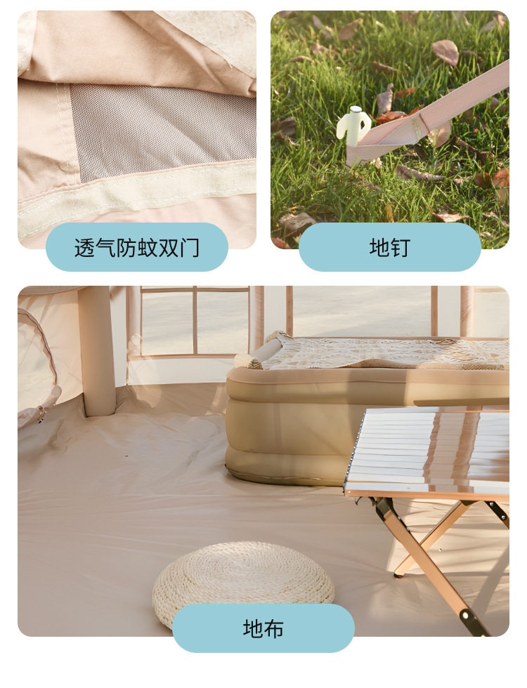 京路发露营帐篷充气式家庭间大空间防霉充气批发厂家野营免搭建
