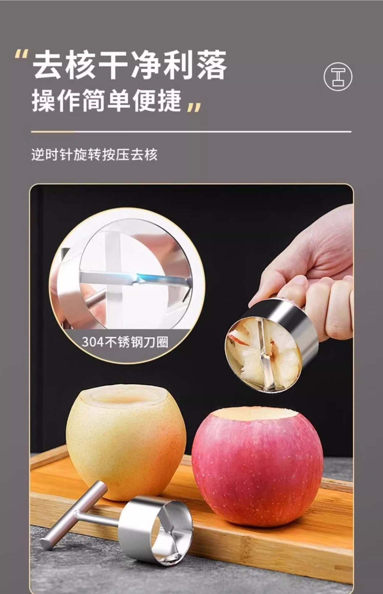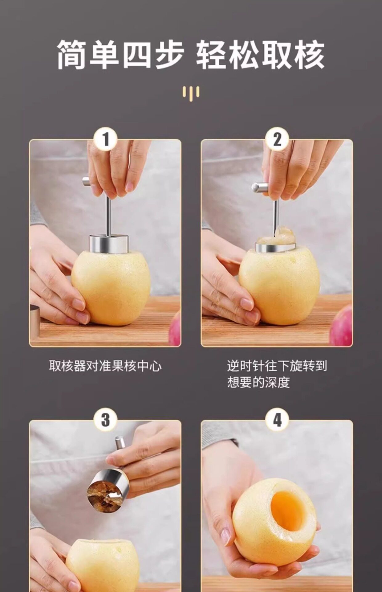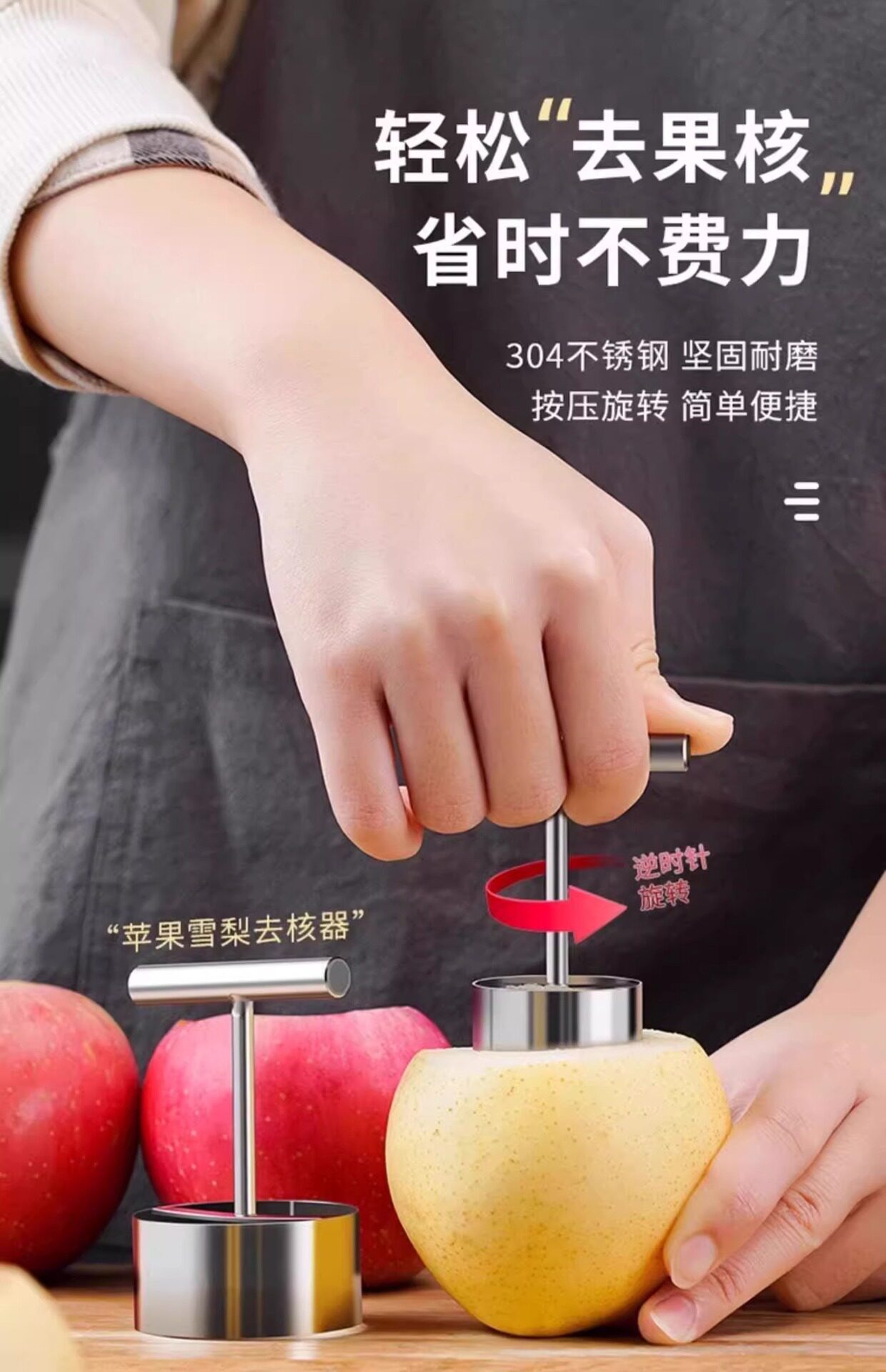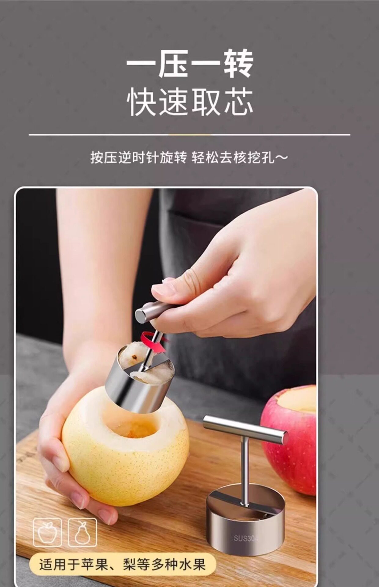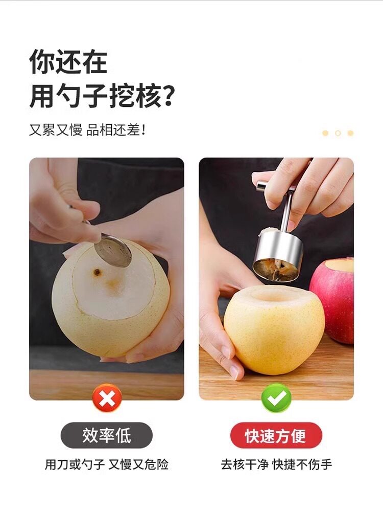 不锈钢水果取心器家用苹果梨去核器抽芯工具雪梨挖孔器挖梨核工具
