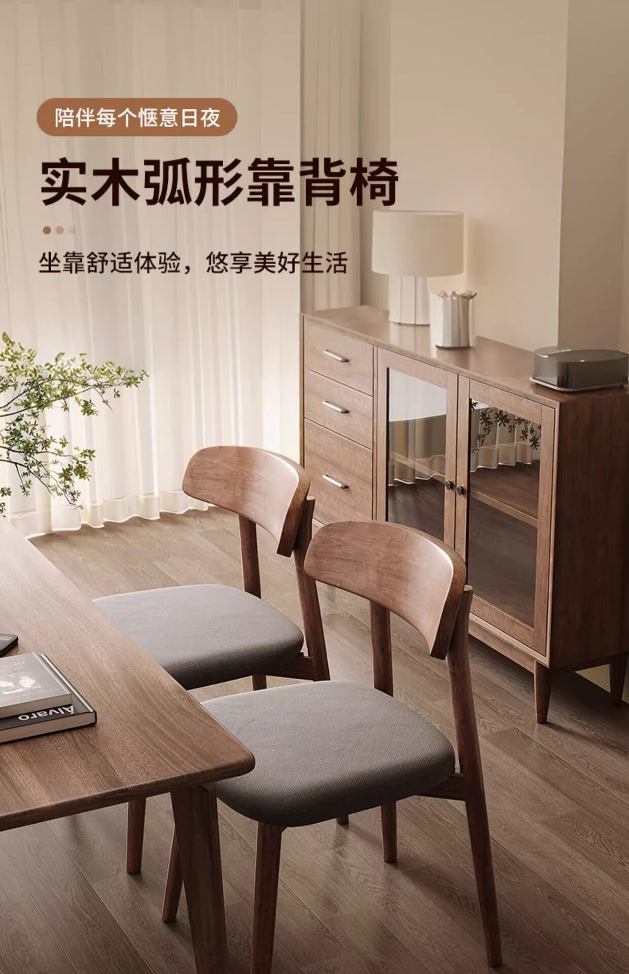 奶油风餐桌椅子实木餐椅餐厅弧形靠背凳子灵芝椅意式极简高靠背