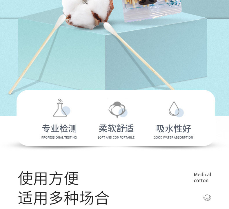 医用棉签掏耳化妆消毒双头木棒一次性单头棉棒棉签医药无菌厂批发