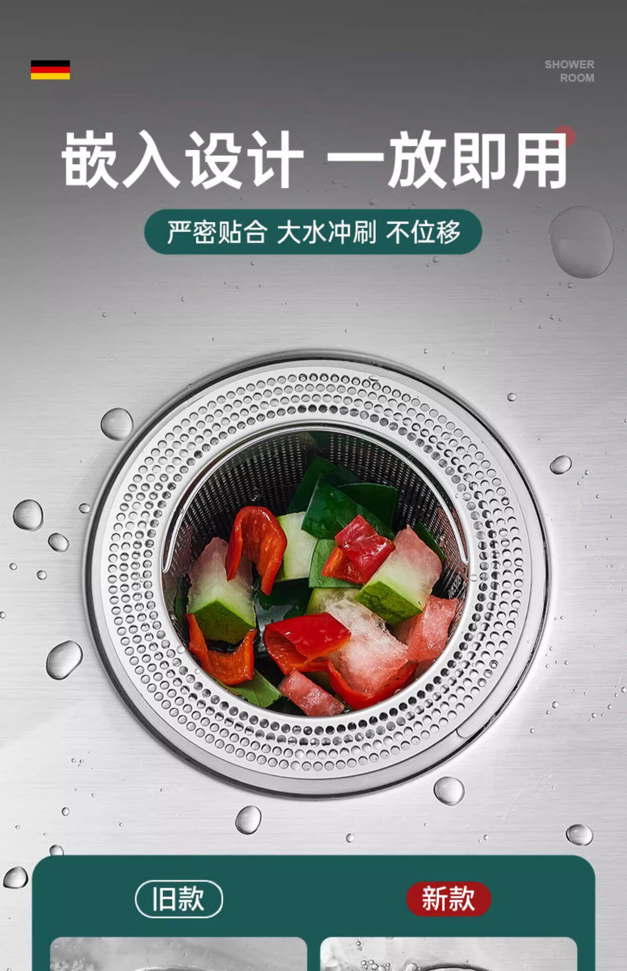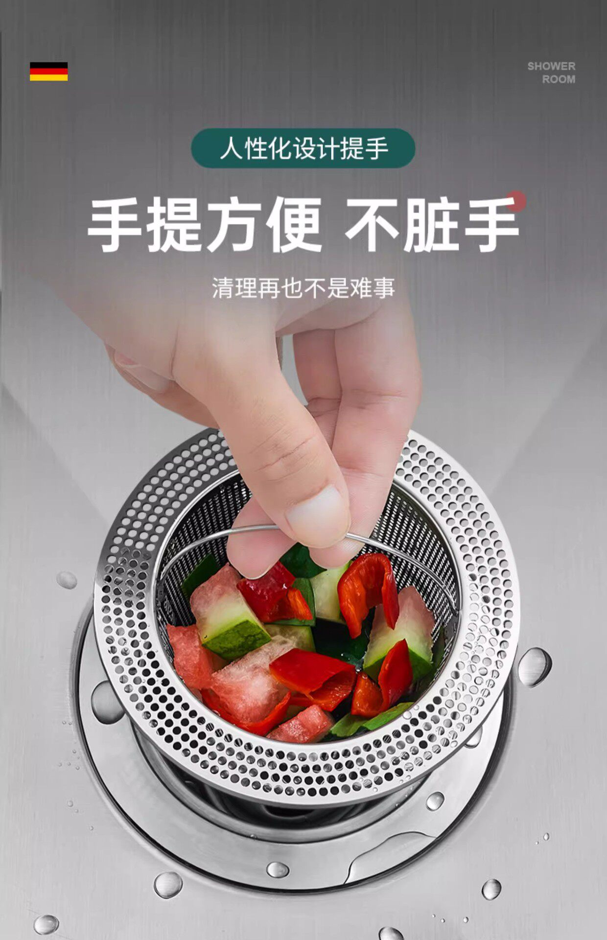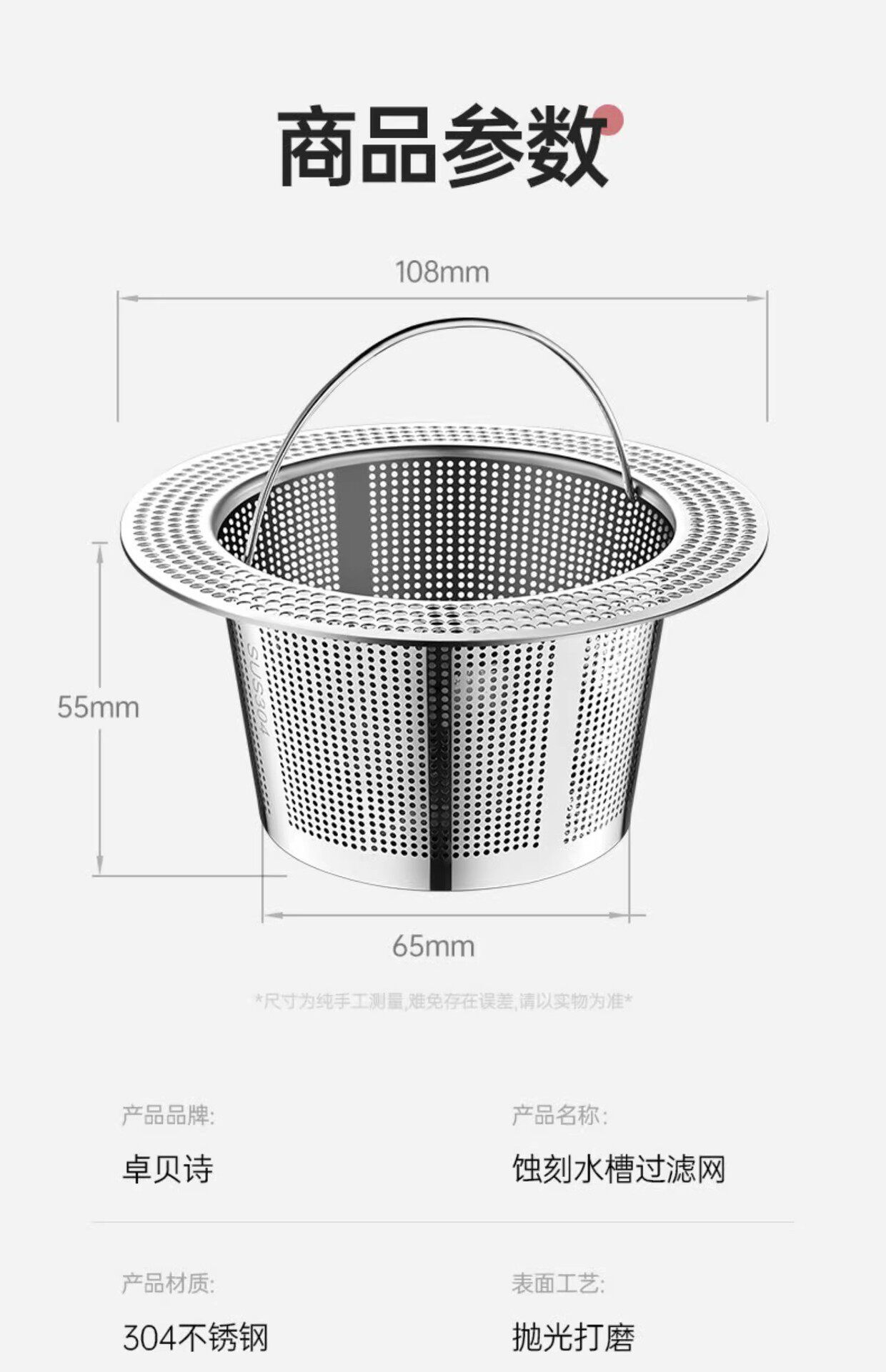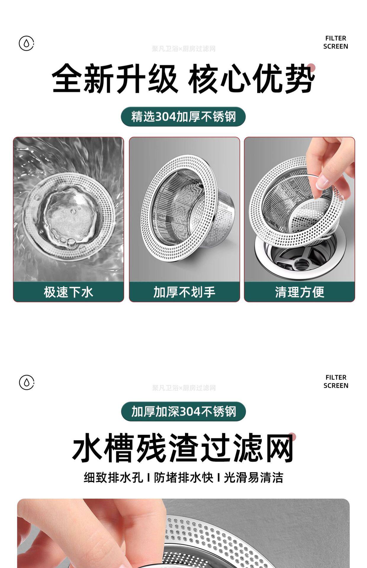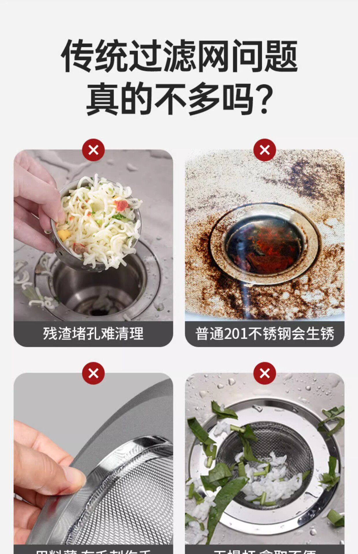 厨房水槽垃圾过滤网洗菜盆漏斗洗碗水池不锈钢304下水道提笼盖器