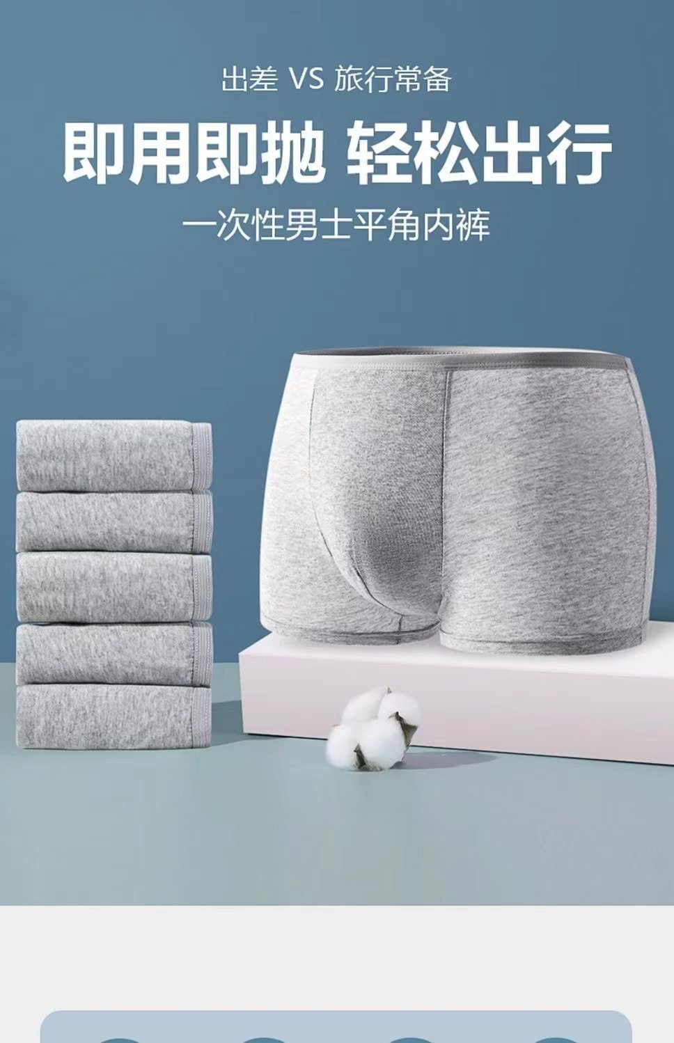 一次性内裤男平角棉质旅行出差便携短裤免洗日抛桑拿护理内裤男